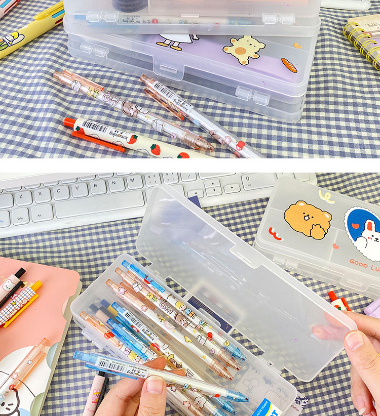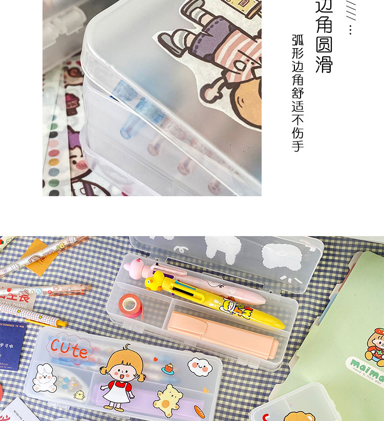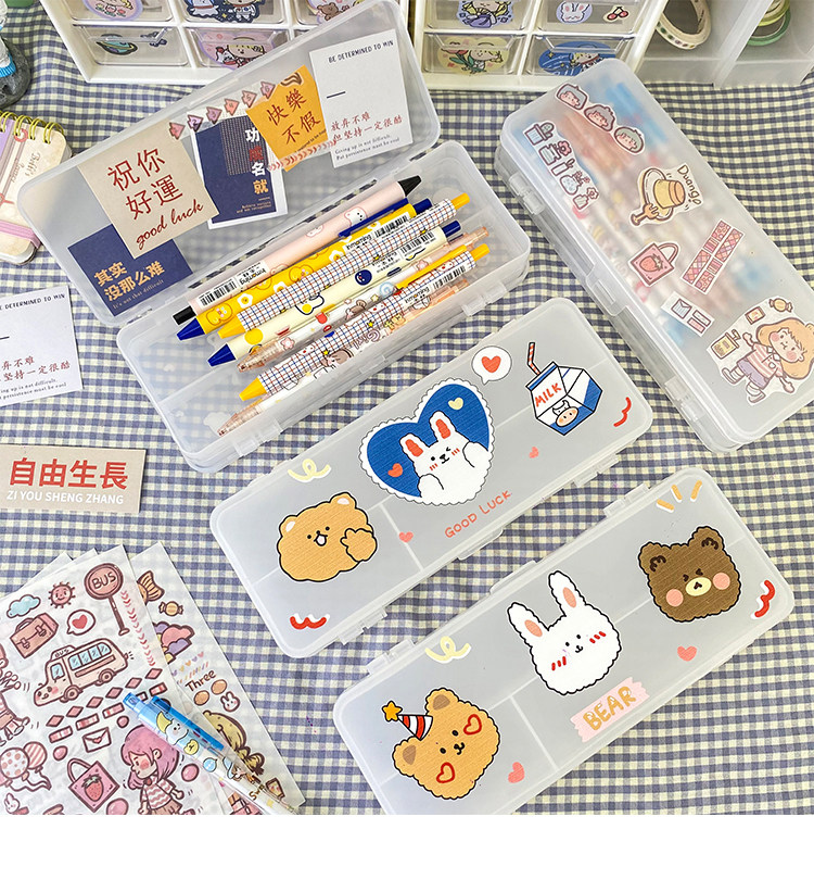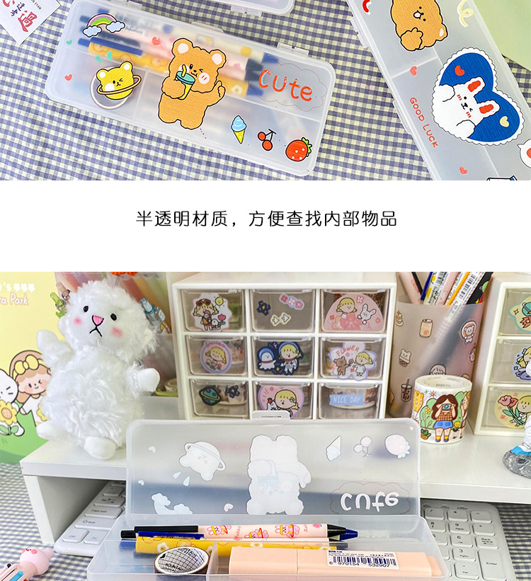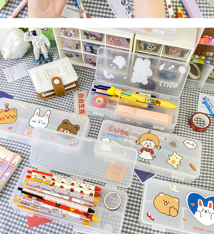 더블 레이어 심플 투명 젖빛 문구 상자 초등학생 대용량 다기능 수납 상자 실용적인 연필 상자 도매스토어 가기