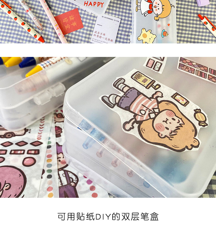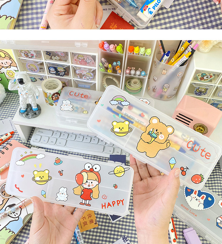 더블 레이어 심플 투명 젖빛 문구 상자 초등학생 대용량 다기능 수납 상자 실용적인 연필 상자 도매