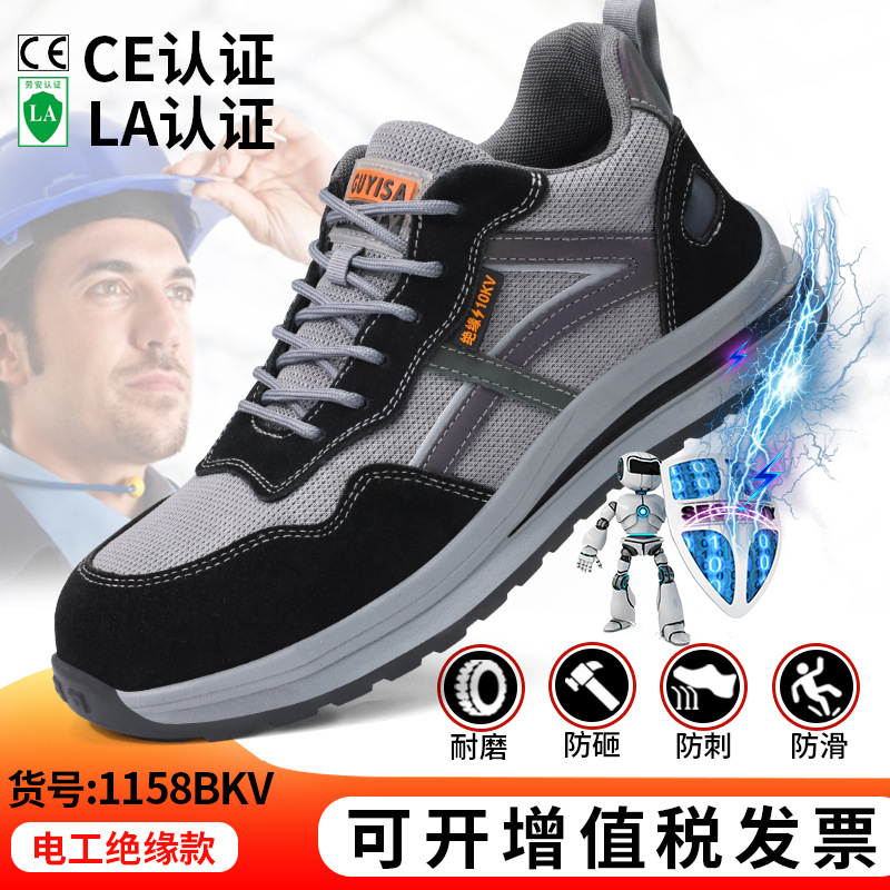10KV 절연화, 여름용 경량 남성용 도매 플라스틱 앞코 통기성 안전화, 충격 방지 및 펑크 방지, 부드러운 밑창 전기 기술자화스토어 가기