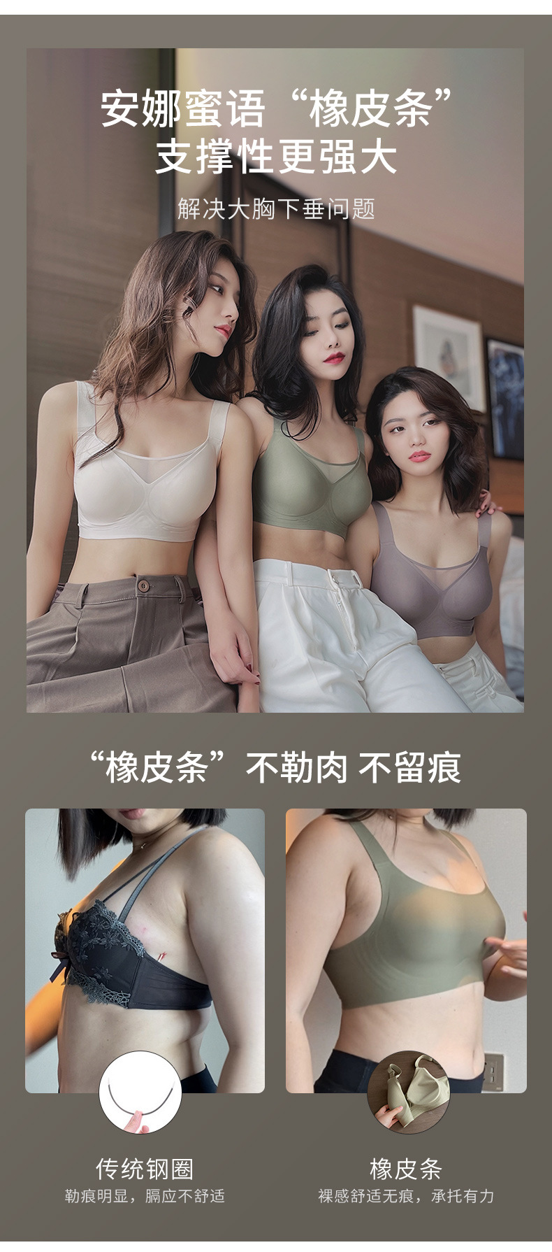 安娜蜜语抹胸内衣大胸显小无痕收副乳裹胸防走光文胸女果冻条胸罩