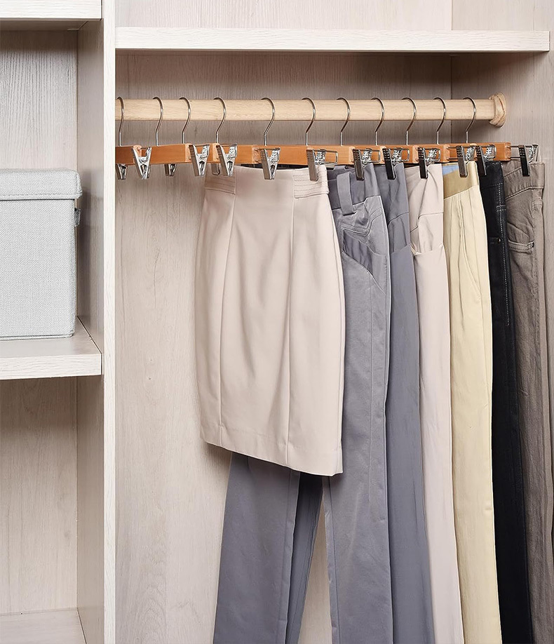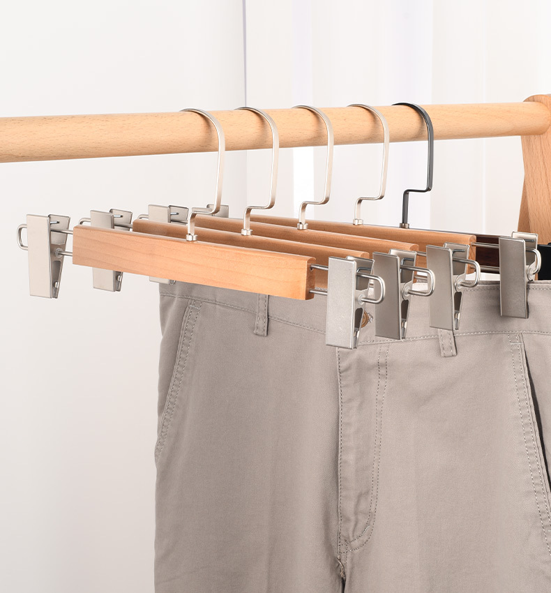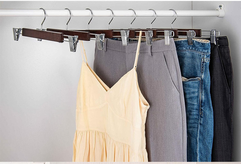 원목 바지걸이, 아동 및 성인용 다기능 가정용 무자국 바지 옷걸이, 정장 바지용 레트로 원목 클립스토어 가기