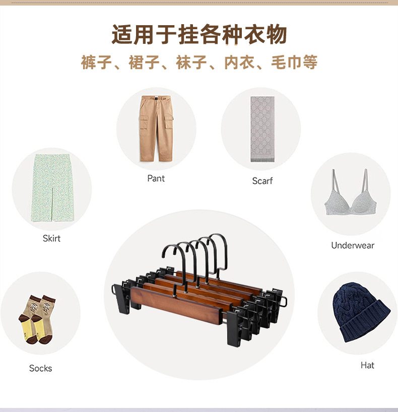 원목 바지걸이, 아동 및 성인용 다기능 가정용 무자국 바지 옷걸이, 정장 바지용 레트로 원목 클립
