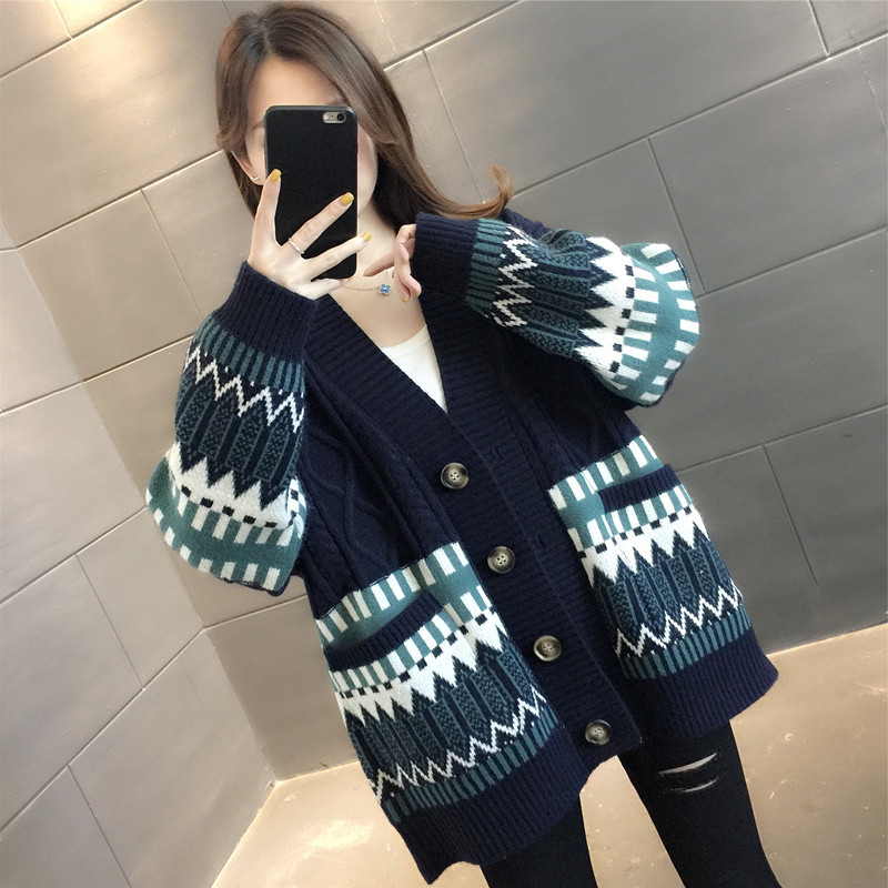 홍콩 스타일 가을과 겨울 새로운 스웨터 한국 스타일 모든 매치 게으른 스타일 에스닉 스타일 니트 스웨터 커플 캐주얼 컬러 매칭 가디건스토어 가기