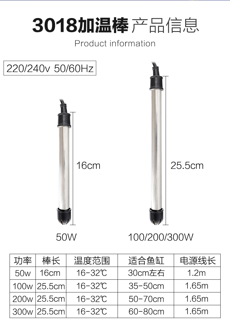 Jia Bao 어항 가열봉 자동 일정한 온도 Jia Bao 스테인레스 스틸 가열 막대 수족관 난방 히터 막대 3018