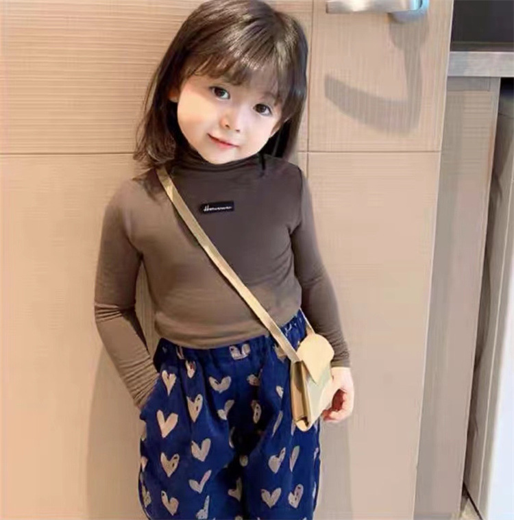 가을과 겨울 단색 여성 및 어린이 중간 칼라 스웨터 아기 소녀 서양 스타일 두꺼운 샌딩 편안한 탄성 베이스 셔츠스토어 가기