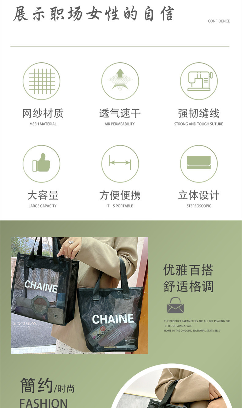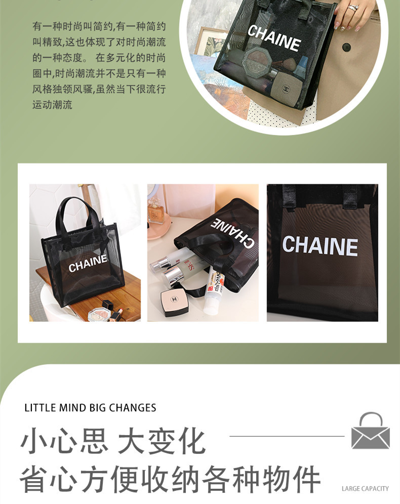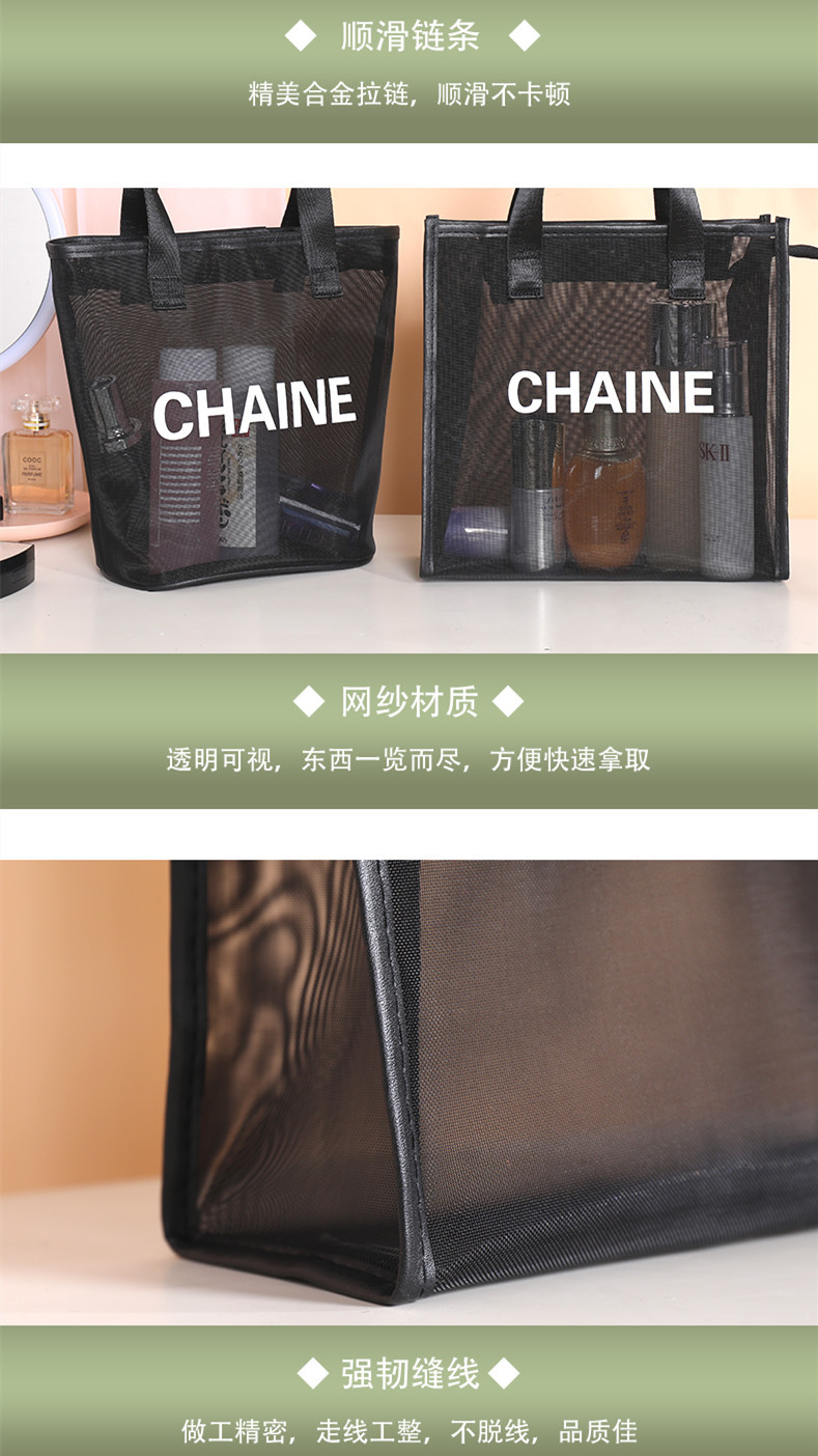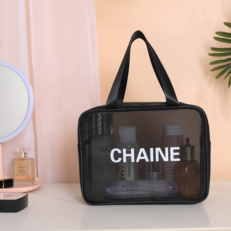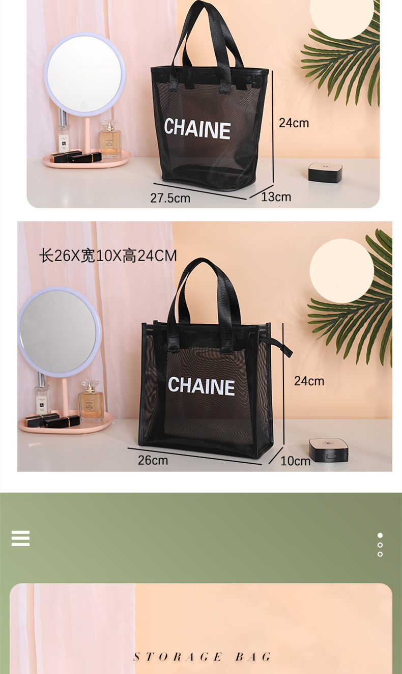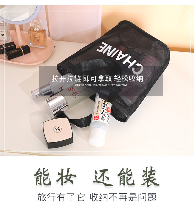 새로운 대형 휴대용 보관 가방 여행 휘트니스 고급 감각 핸드백 대용량 메쉬 워시 화장품 가방