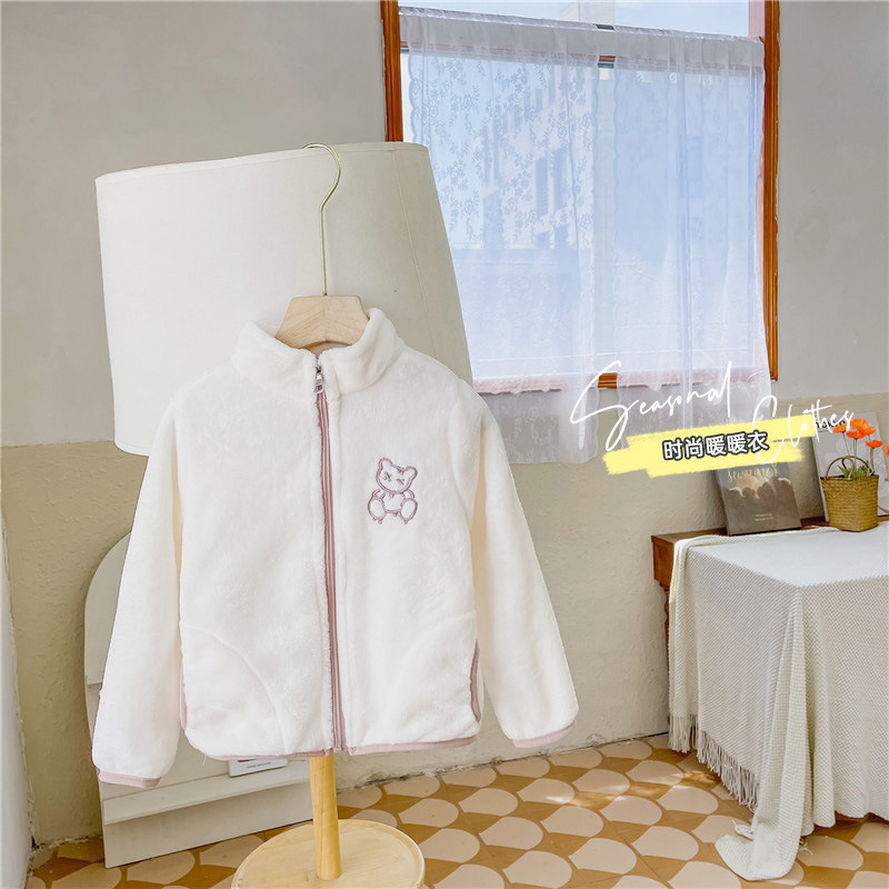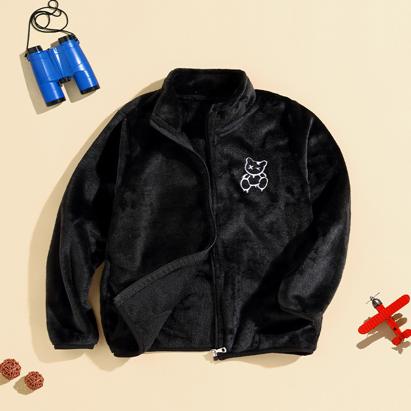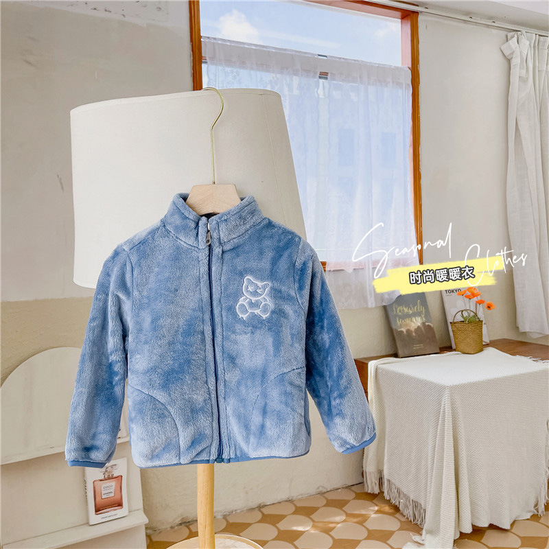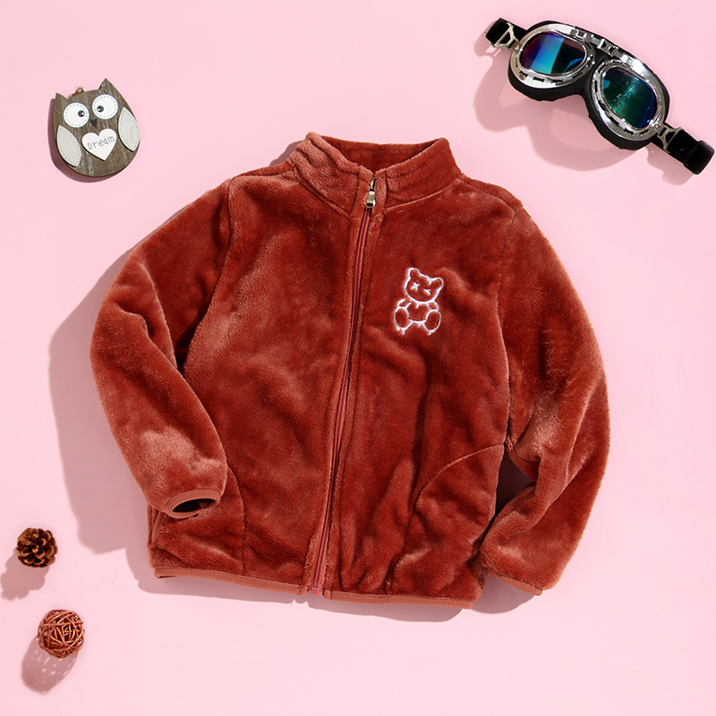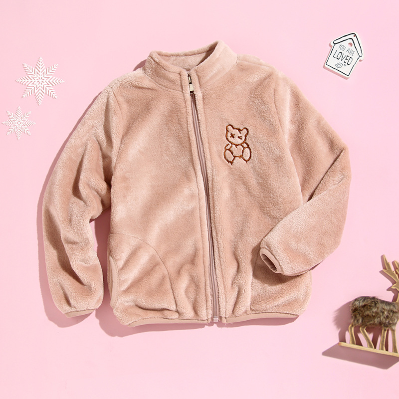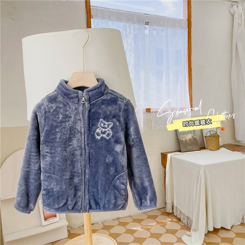 어린이 스탠드 칼라 플러시 코트 소년 기모 따뜻한 면 코트 아기 소녀 가을과 겨울 두꺼운 산호 양털 재킷 탑
