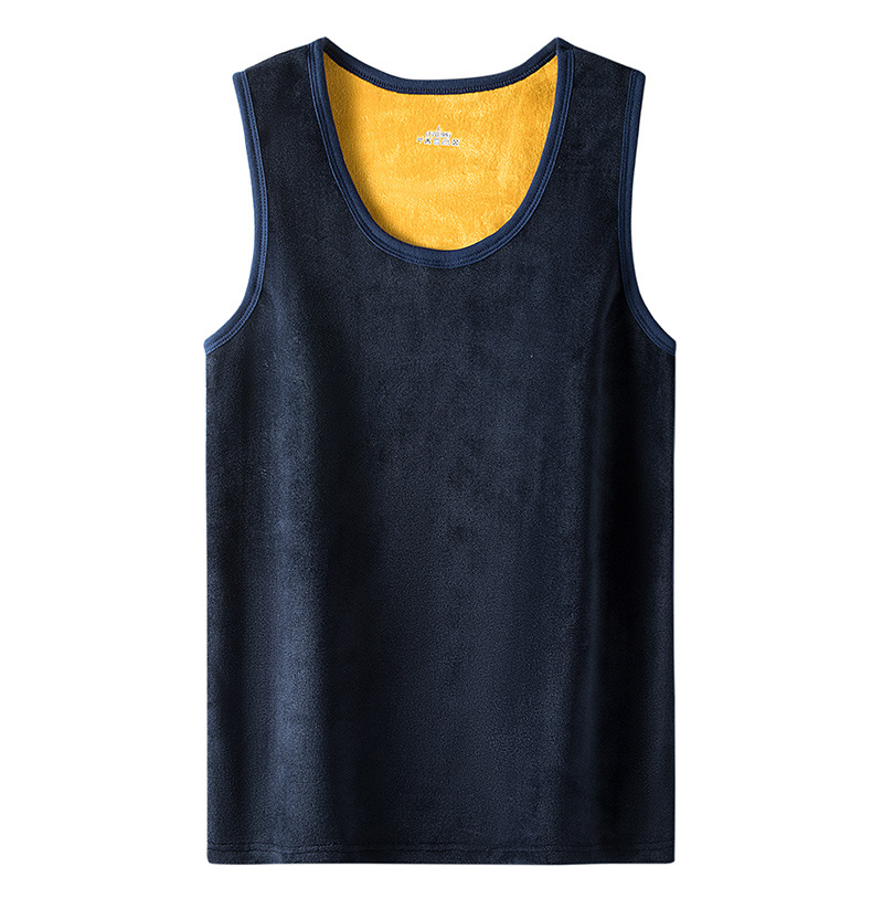 남자의 골드 벨벳 따뜻한 조끼 기모 두꺼운 라운드 넥베이스 속옷 민소매 가을과 겨울 내부 조끼