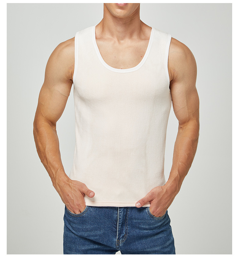 남자의 골드 벨벳 따뜻한 조끼 기모 두꺼운 라운드 넥베이스 속옷 민소매 가을과 겨울 내부 조끼스토어 가기