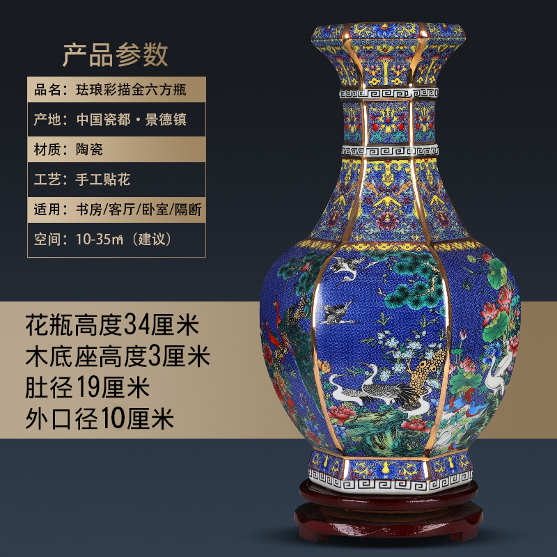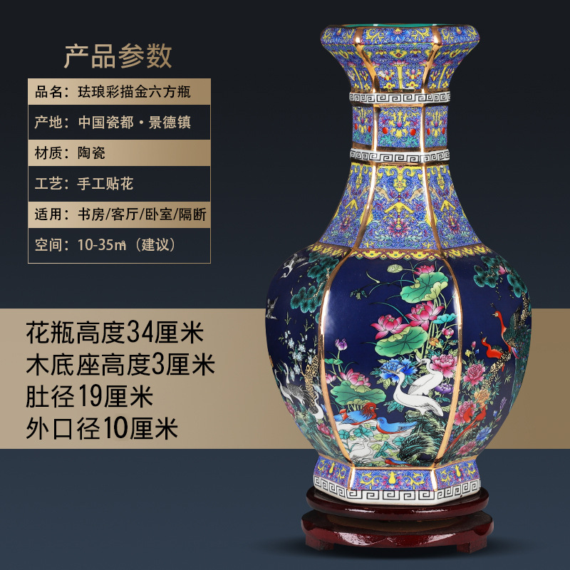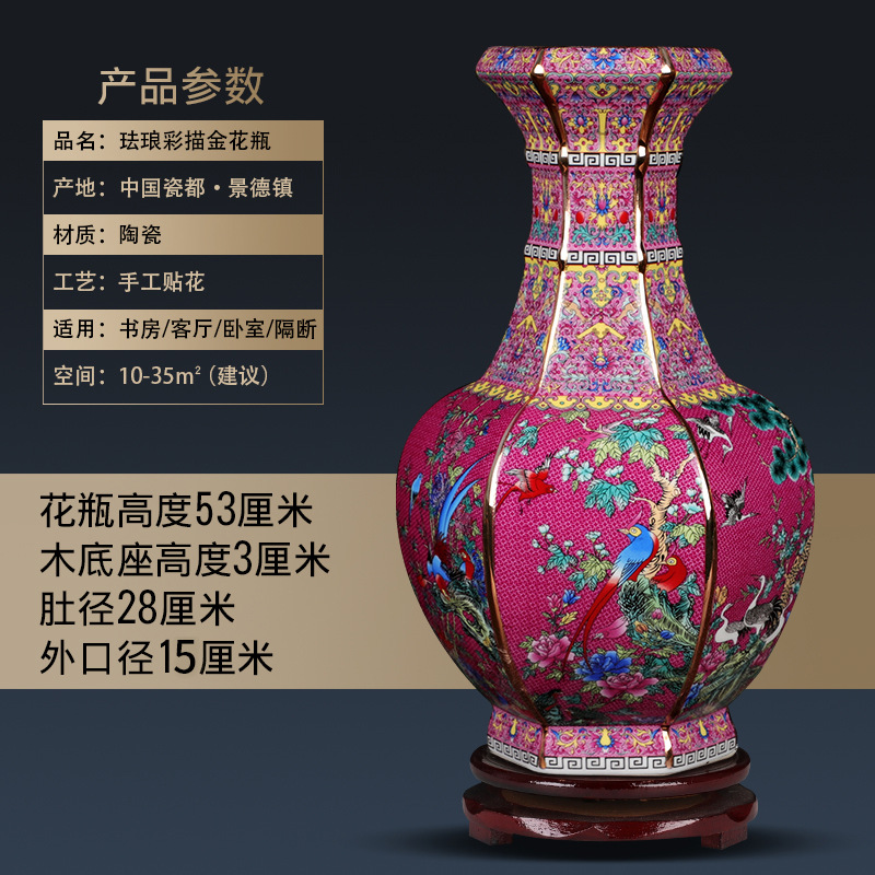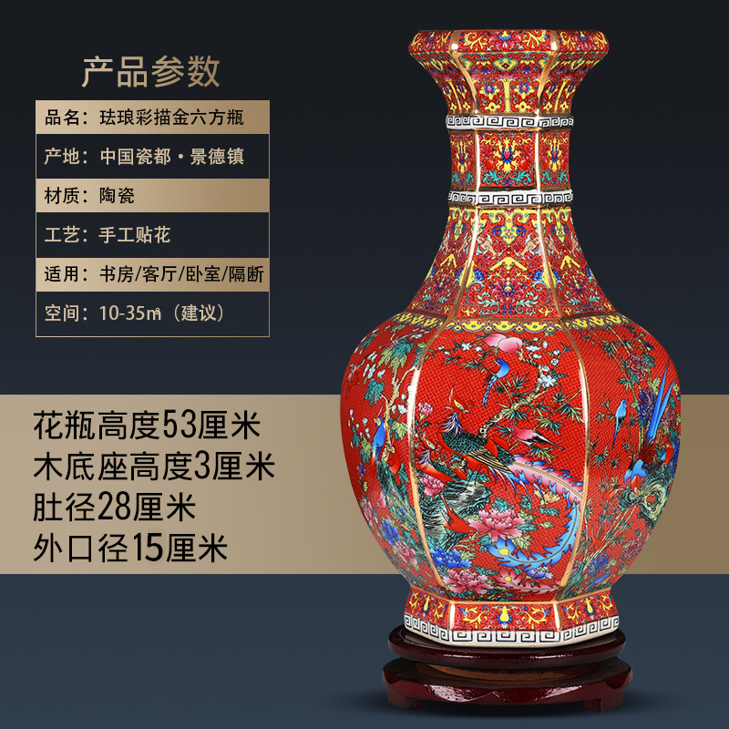 중국식 세라믹 꽃병 에나멜 장식품 Jingdezhen 거실 꽃 장식품 선물 상자 골동품 모조 공예품스토어 가기