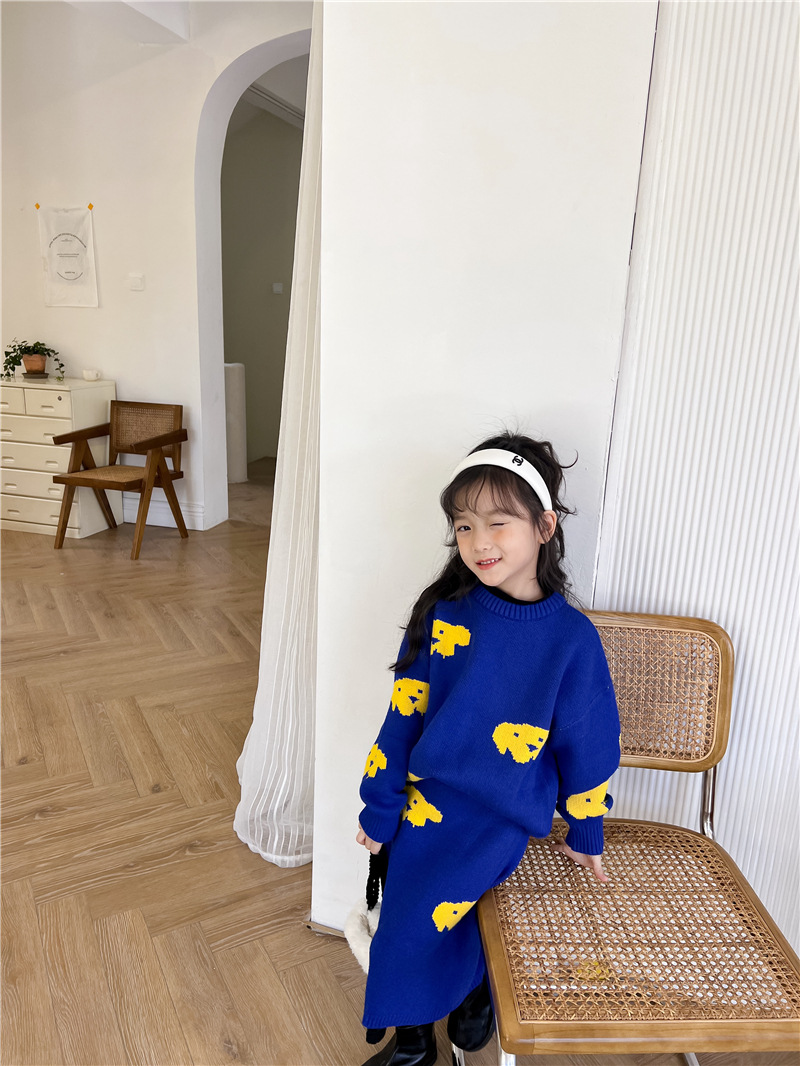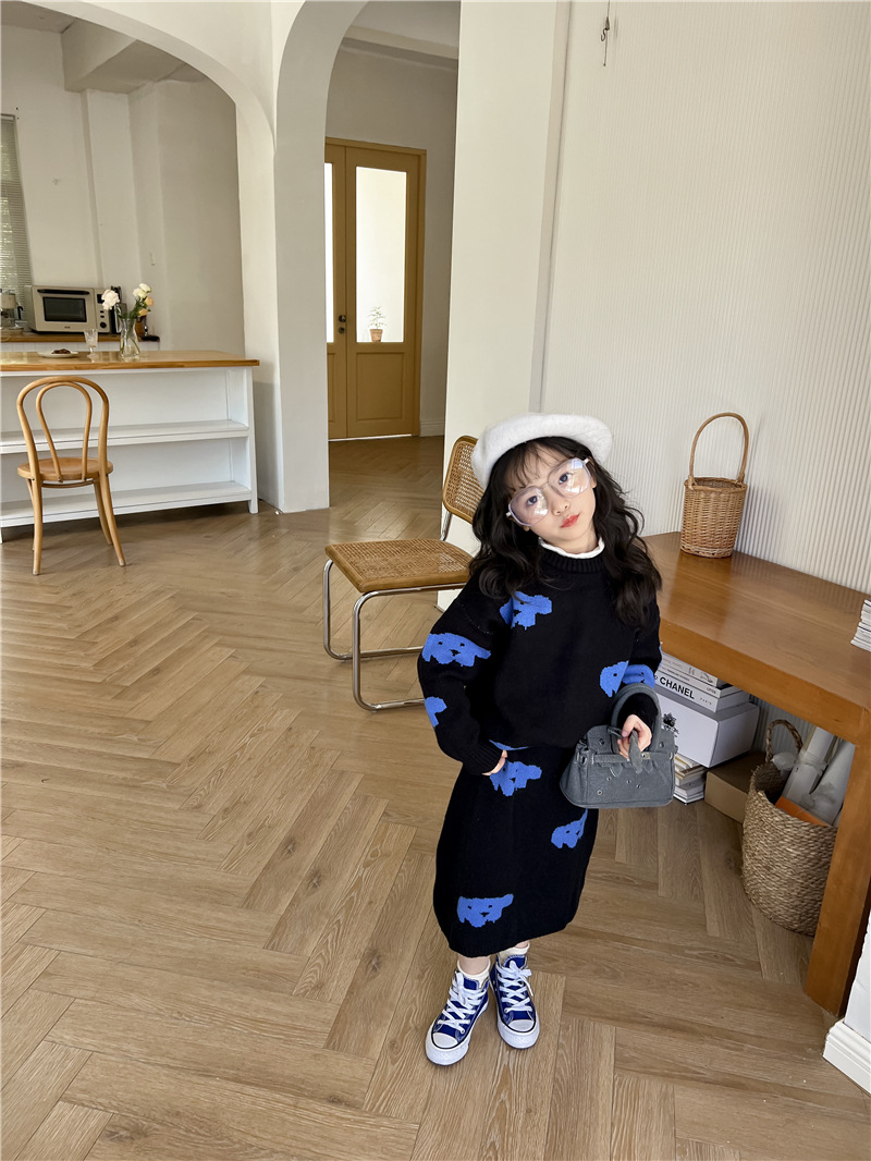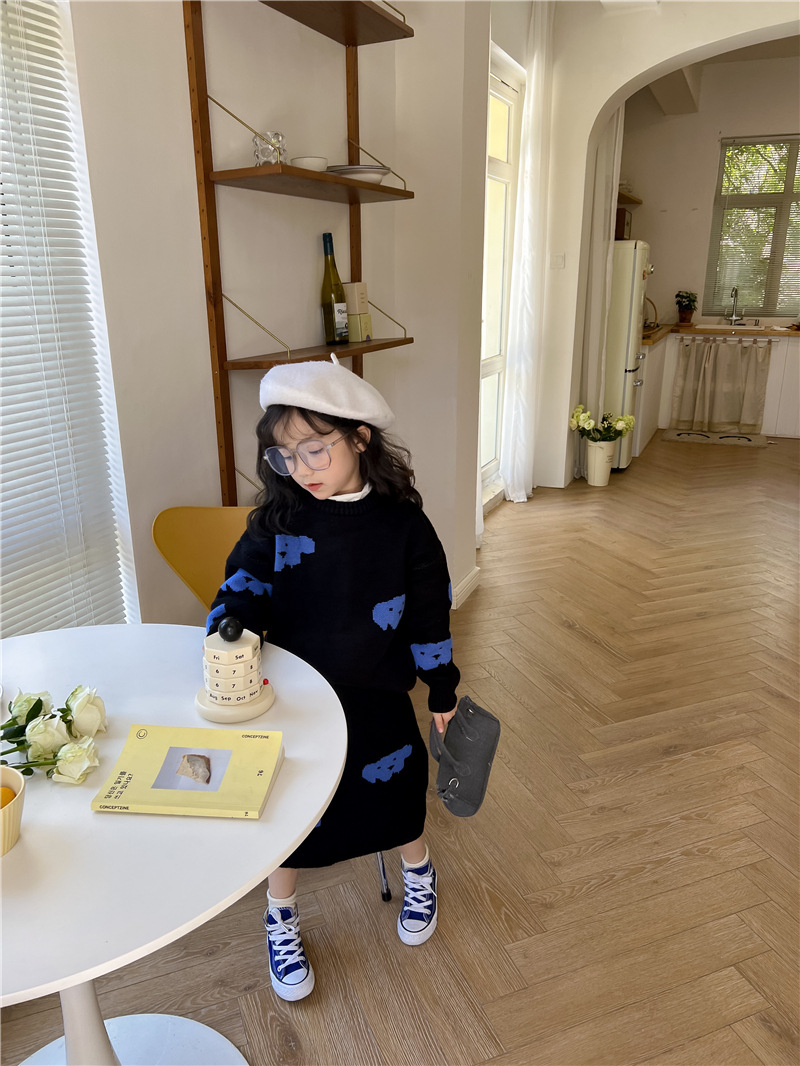 여아 스웨터 세트 2021 가을 겨울 어린이 니트 탑 스커트 투피스 세트 베이비 크루넥 풀오버 M46스토어 가기