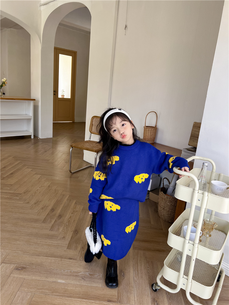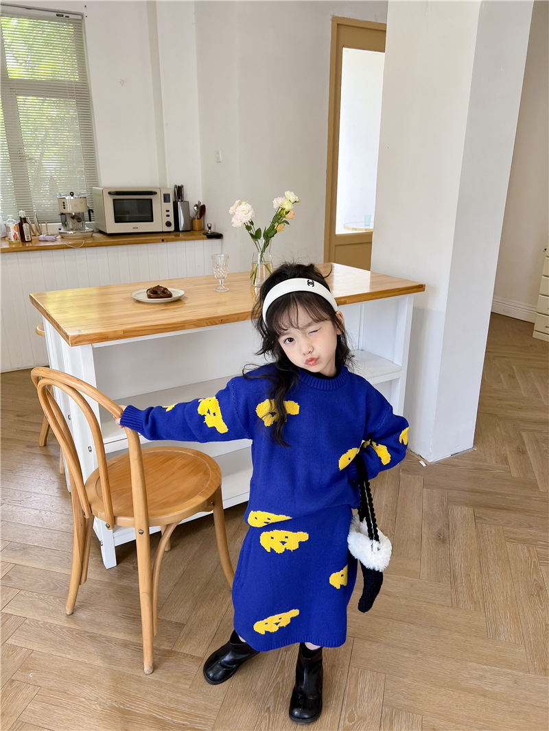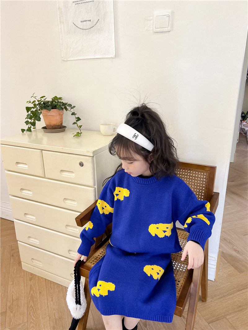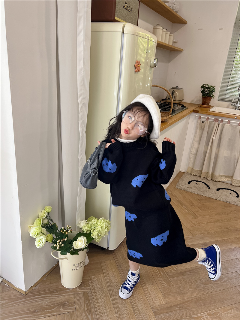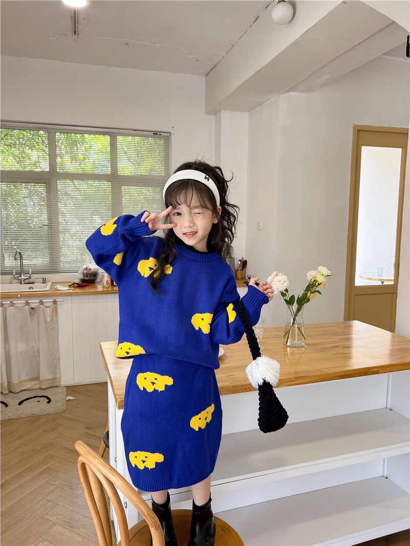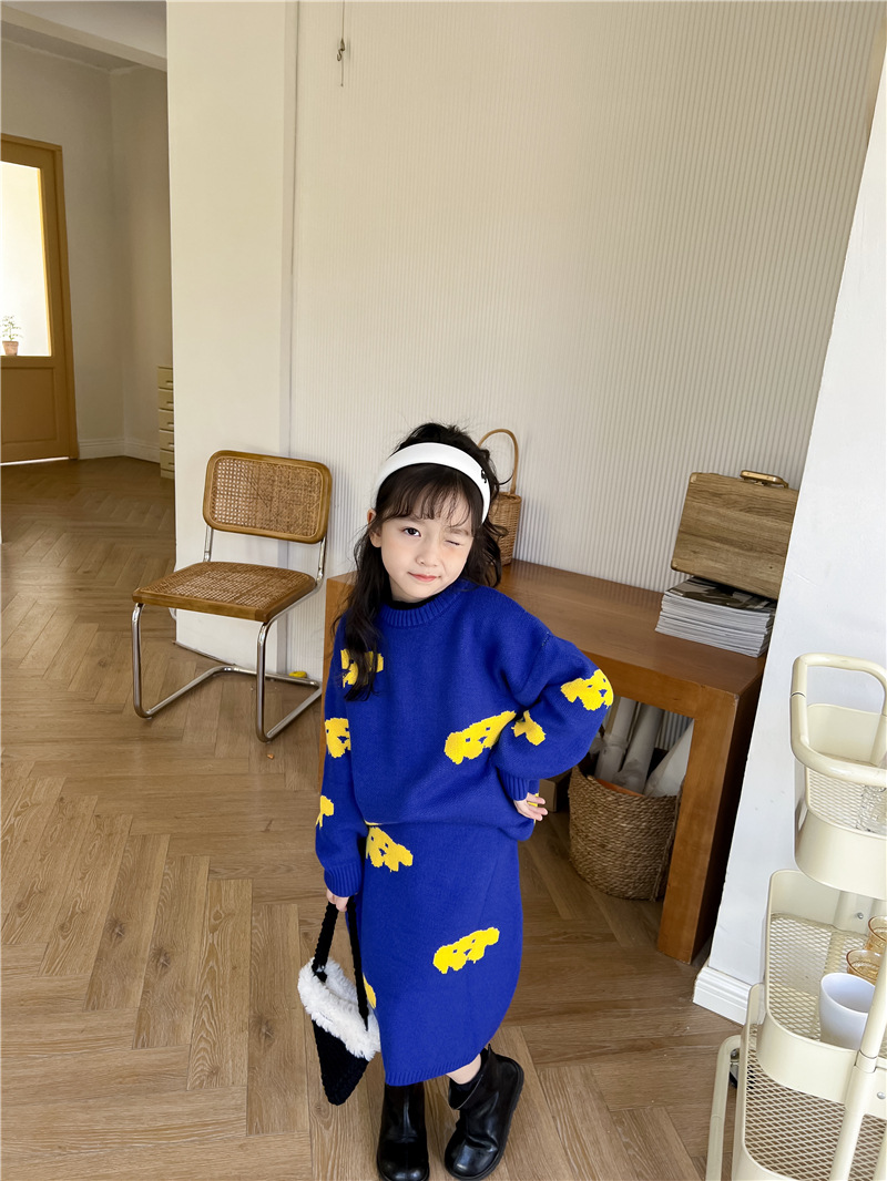 여아 스웨터 세트 2021 가을 겨울 어린이 니트 탑 스커트 투피스 세트 베이비 크루넥 풀오버 M46