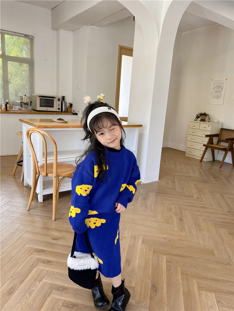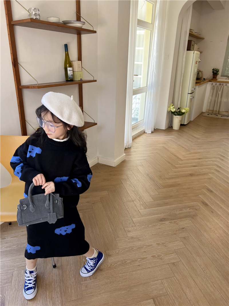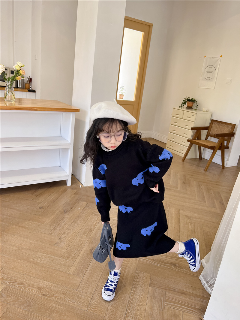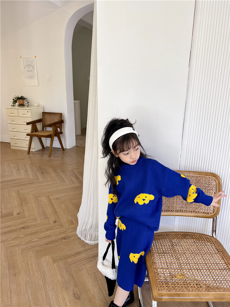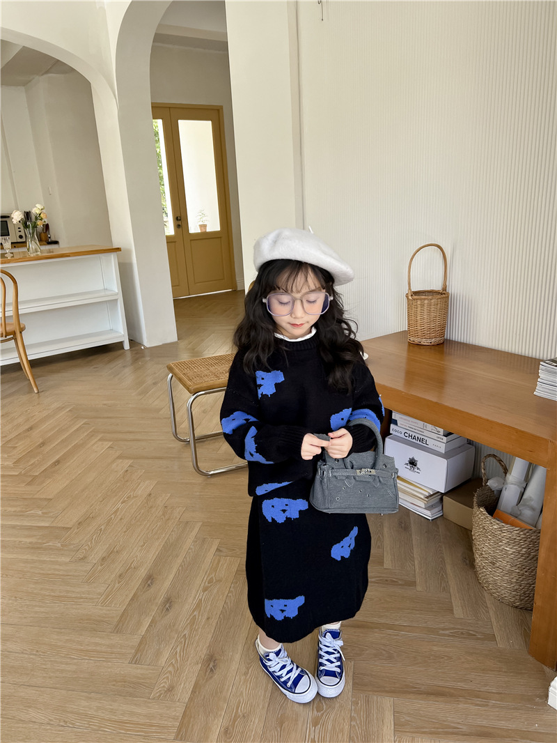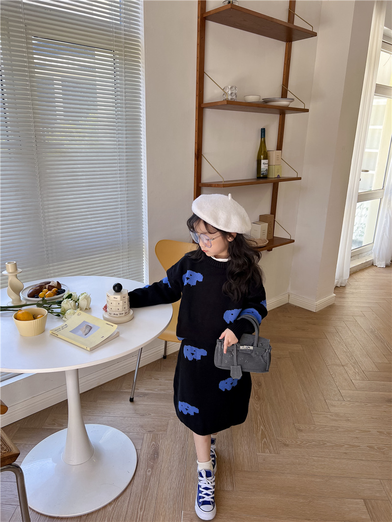 여아 스웨터 세트 2021 가을 겨울 어린이 니트 탑 스커트 투피스 세트 베이비 크루넥 풀오버 M46