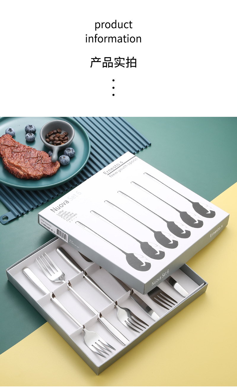 독일 304 스테인레스 스틸 한국식 스푼 포크 6 선물 상자 식당 긴 손잡이 스푼 믹싱 스푼 가정용 스푼 수프 스푼