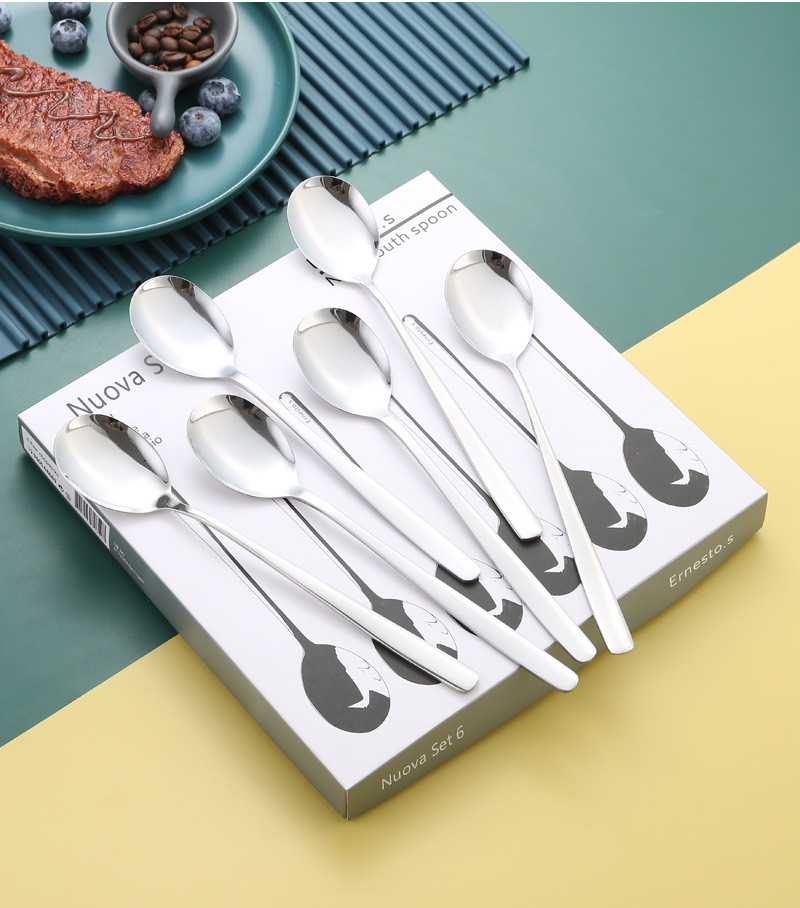 독일 304 스테인레스 스틸 한국식 스푼 포크 6 선물 상자 식당 긴 손잡이 스푼 믹싱 스푼 가정용 스푼 수프 스푼스토어 가기