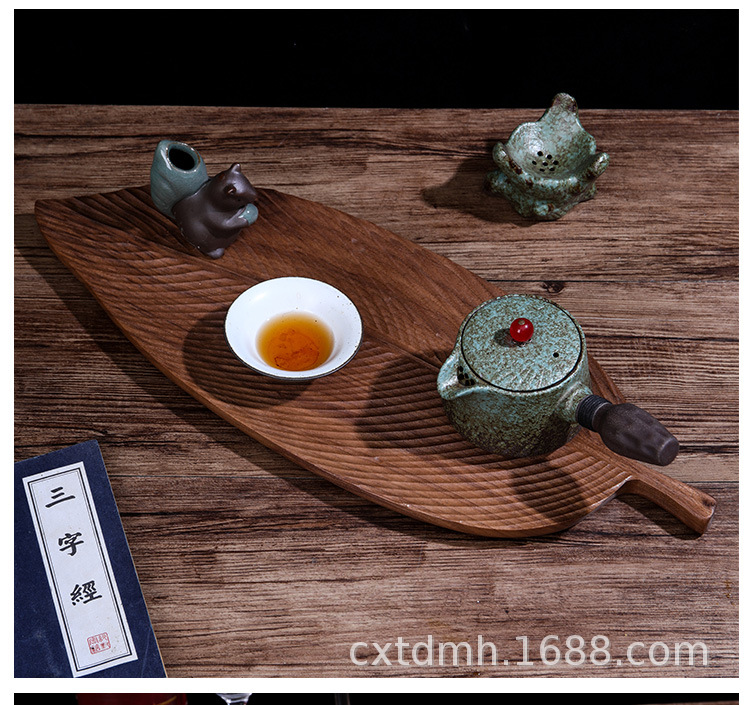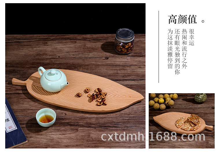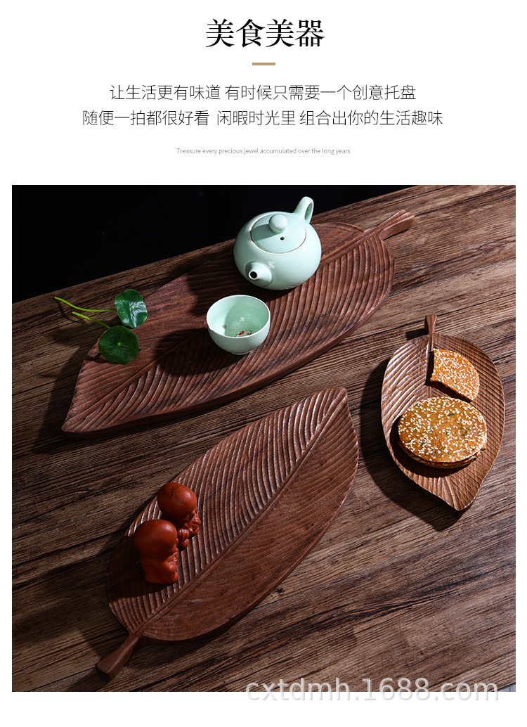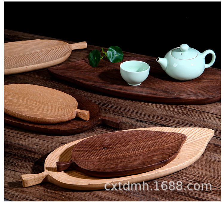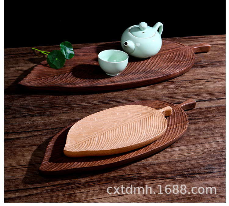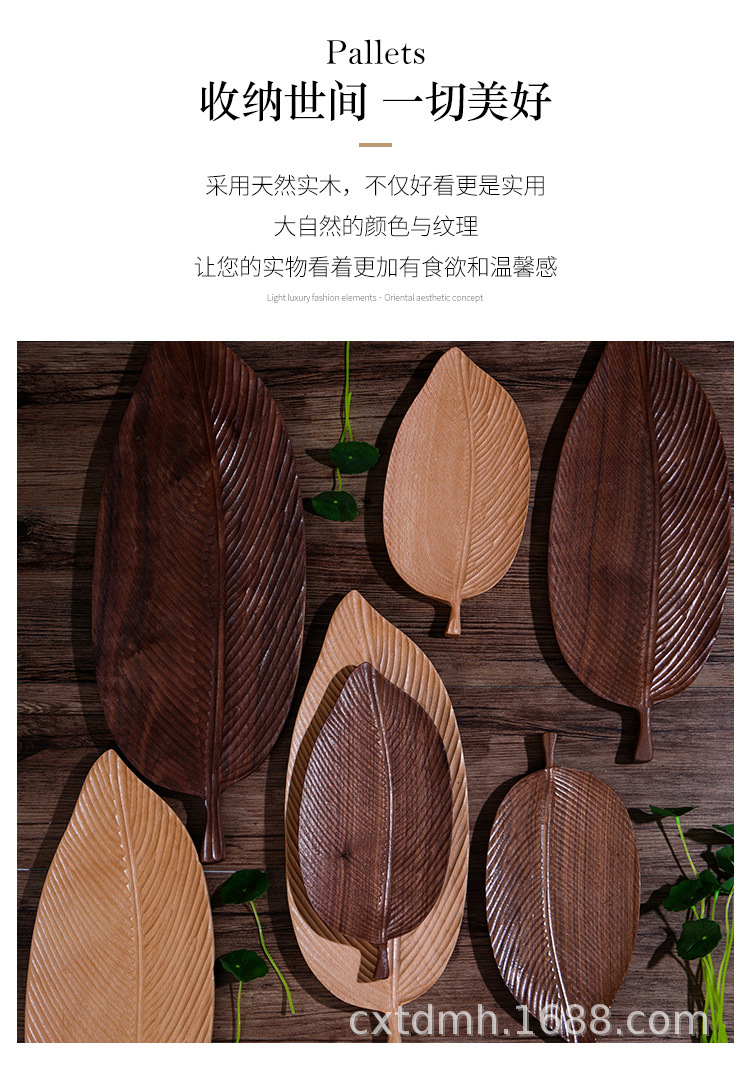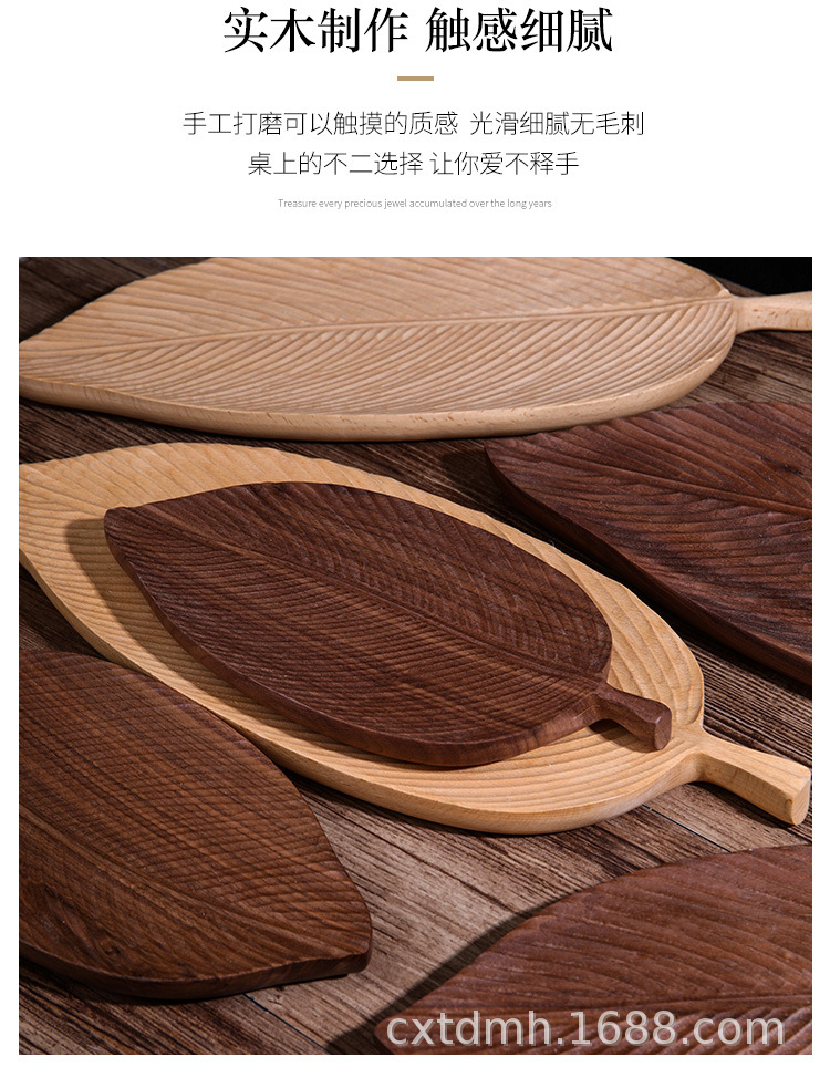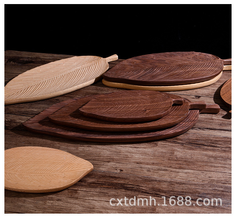 검은 호두 잎 디너 플레이트 단단한 나무 과일 트레이 간식 디저트 말린 과일 접시 가정용 조각 잎 질감 디너 플레이트스토어 가기
