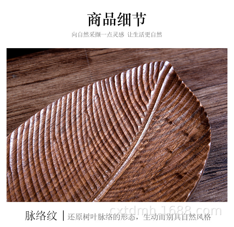 검은 호두 잎 디너 플레이트 단단한 나무 과일 트레이 간식 디저트 말린 과일 접시 가정용 조각 잎 질감 디너 플레이트