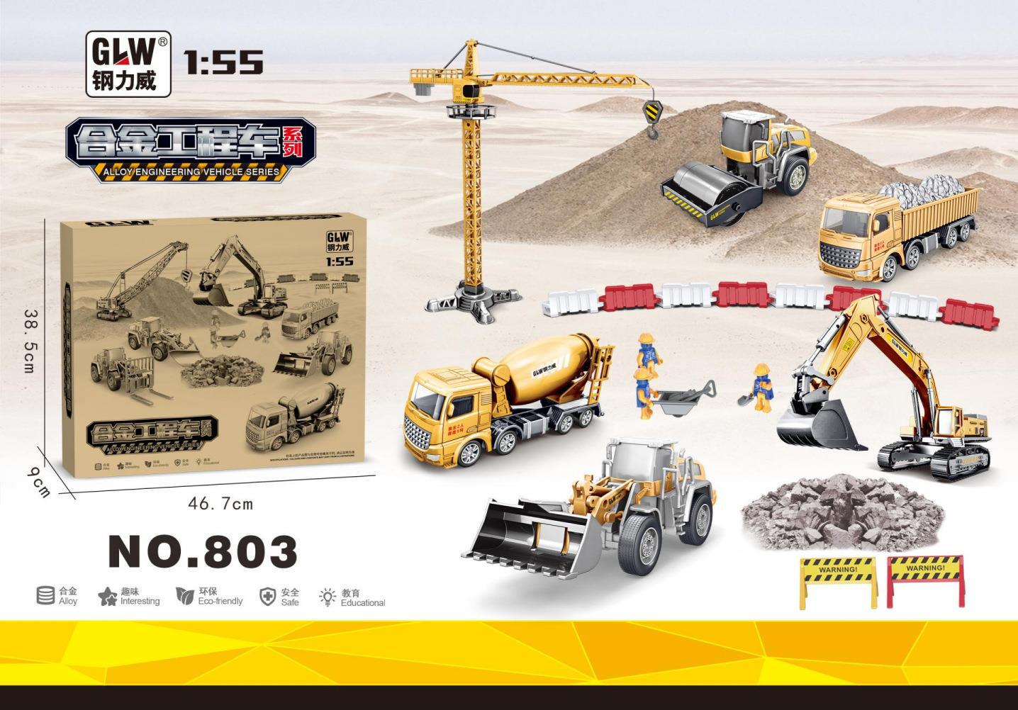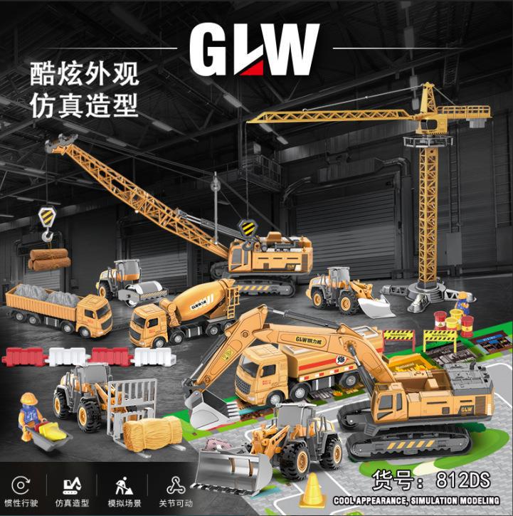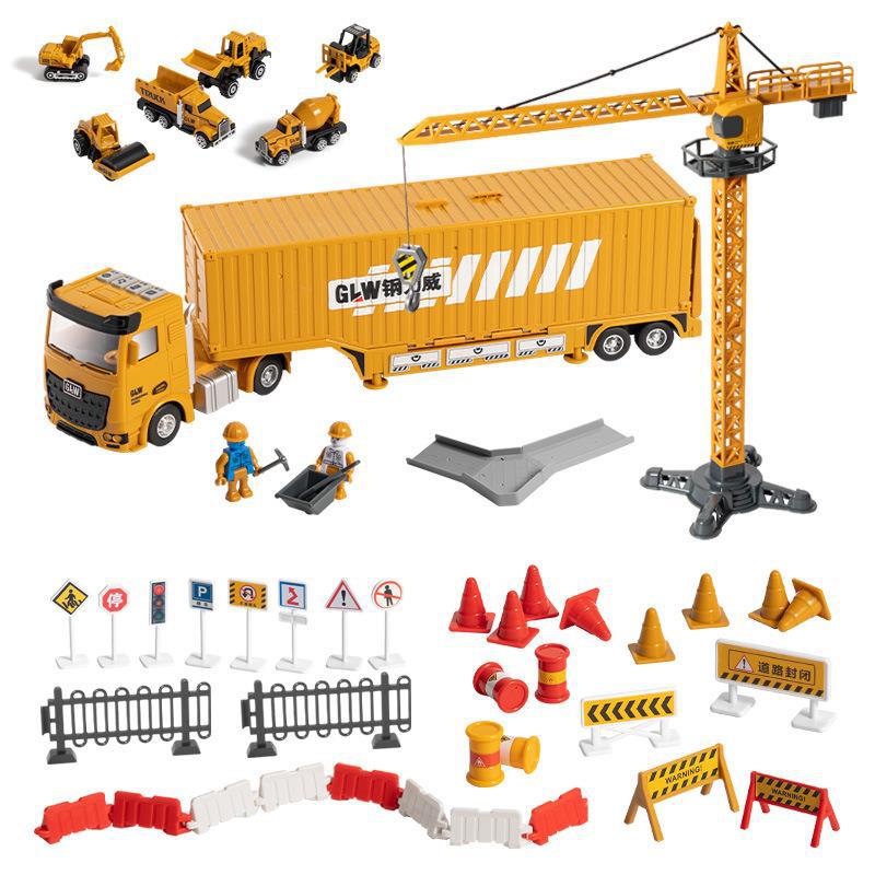 스틸 Liwei 합금 엔지니어링 차량 시뮬레이션 굴삭기 세트 크레인 수송 차량 롤러 슬라이딩 어린이 장난감