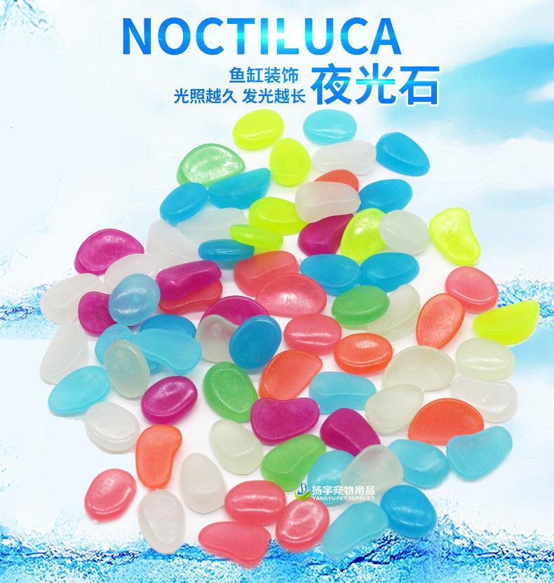夜光石的主要原材料是 稀土 夜光粉 玻璃溶液 树脂溶液。比石头轻一点,但可以沉在鱼缸底部,在晚上当你关闭所有光源的情况下,夜光石可以散发出光芒,点缀出别样的鱼缸造景哦!