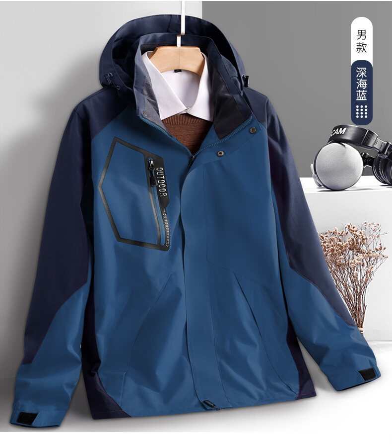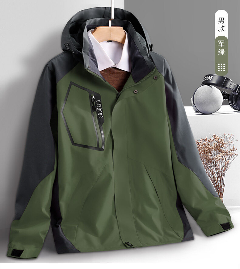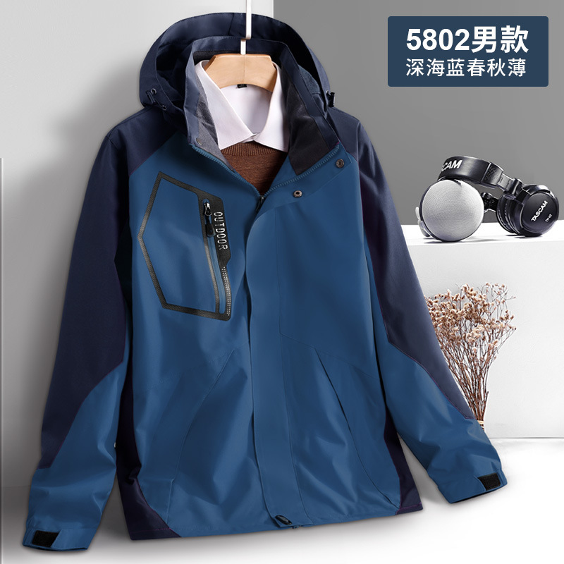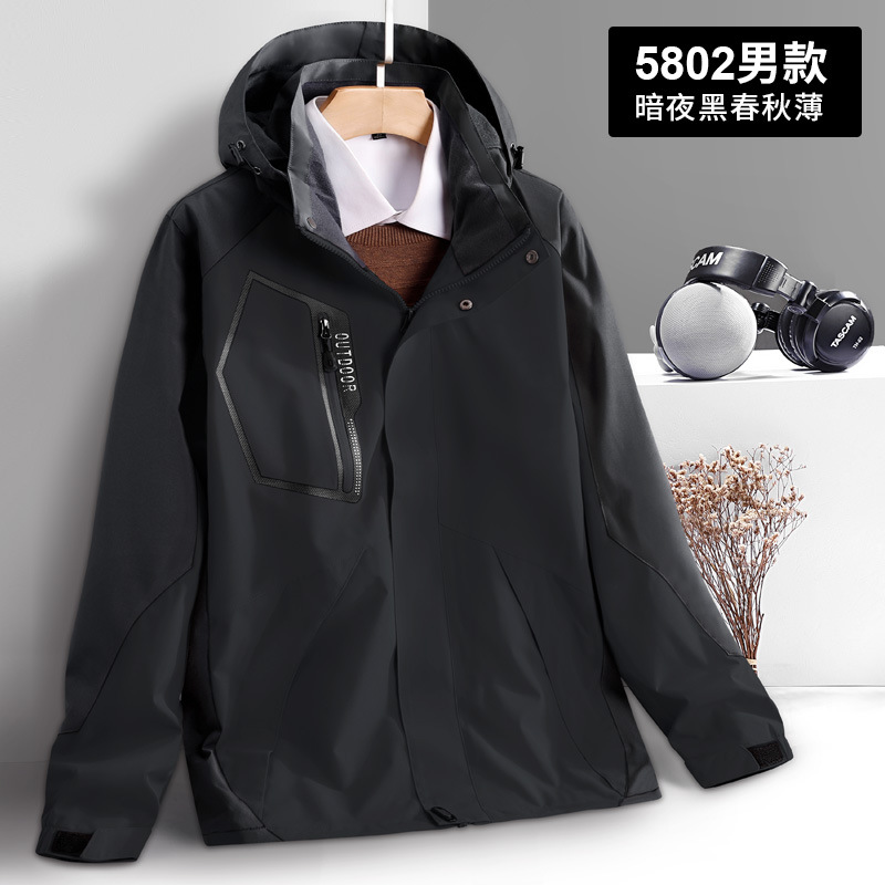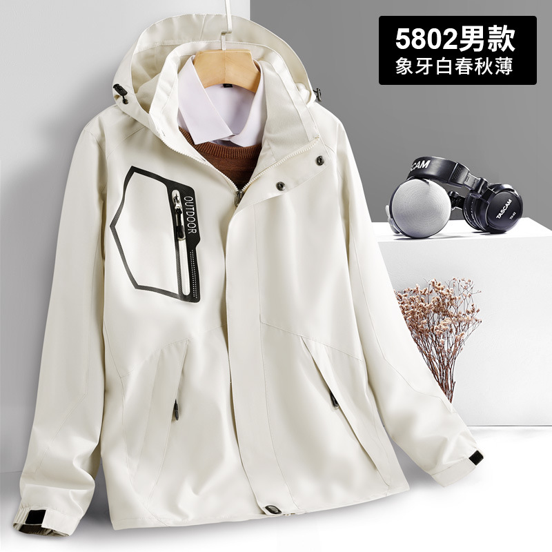 남자의 봄과 가을 얇은 방풍 방수 야외 싱글 레이어 통기성 겨울 유행 브랜드 재킷 남성용 커플 등산 세트