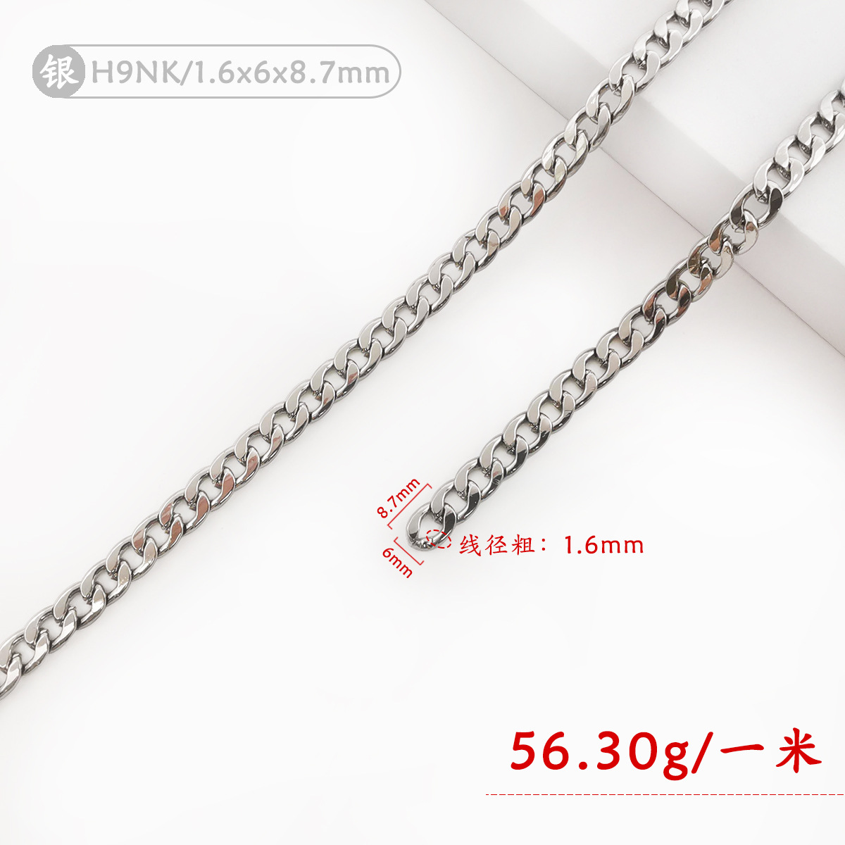 • H9NK-002 (실버) 1.6x6x8.7mm 플랫 체인