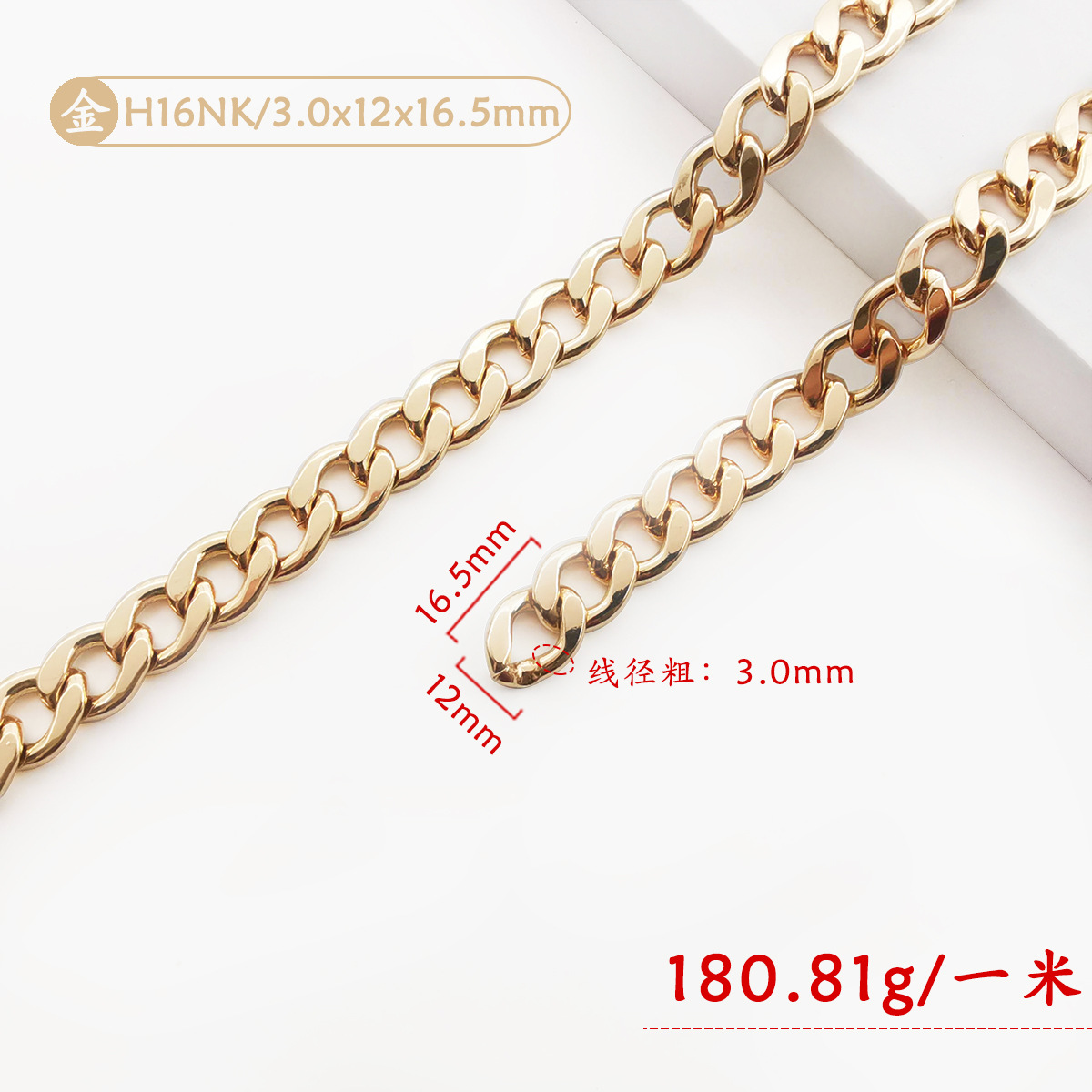 • H16NK-001 (금) 3.0x12x16.5mm 플랫 아이언 체인