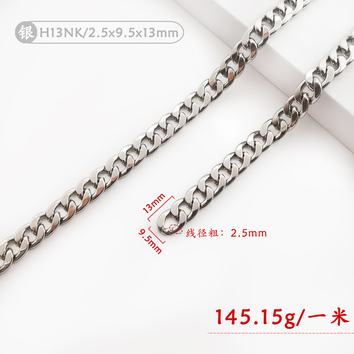 • H13NK-002 (실버) 2.5x9.5x13mm 플랫 아이언 체인