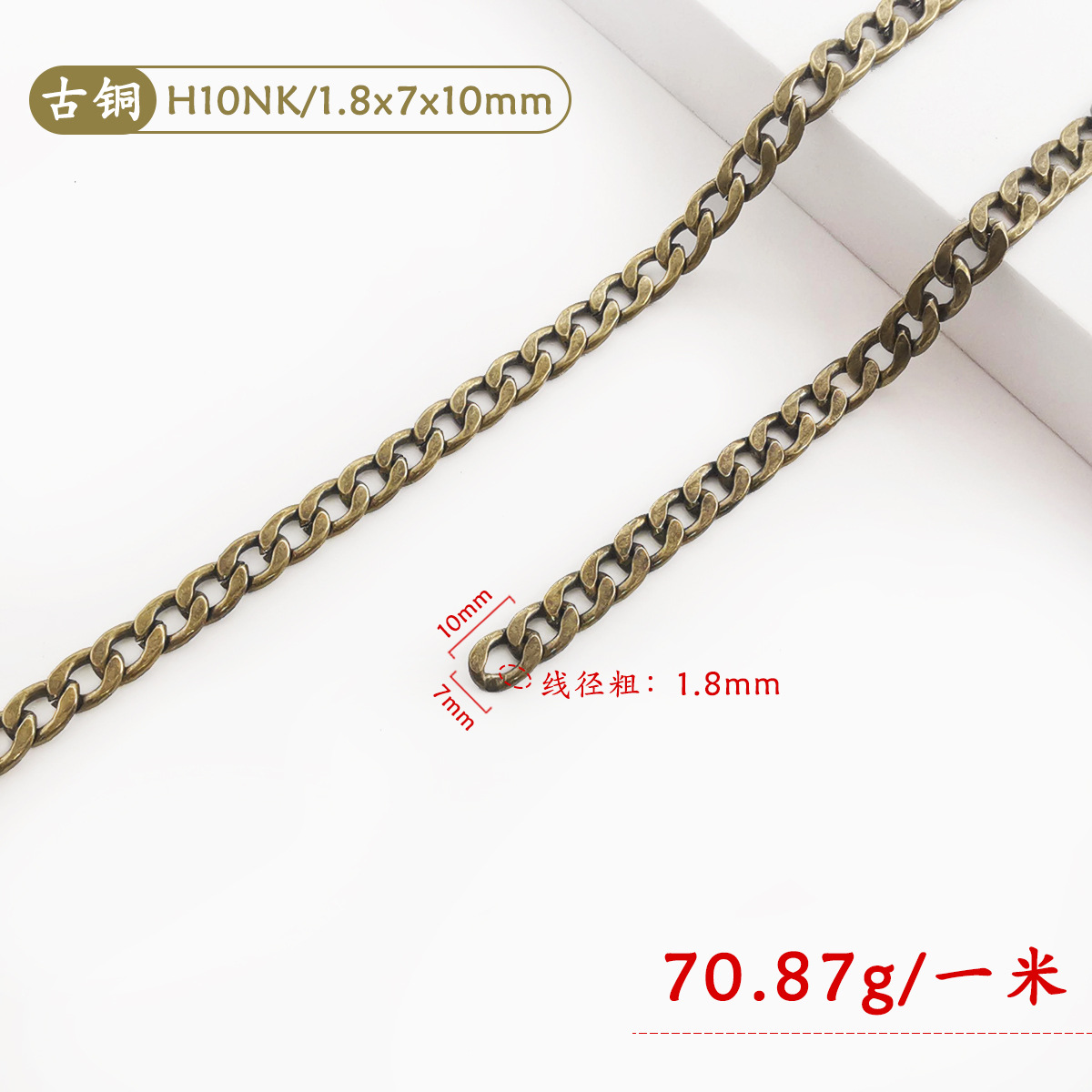 • H10NK-004 (청동) 1.8x7x10mm 플랫 체인