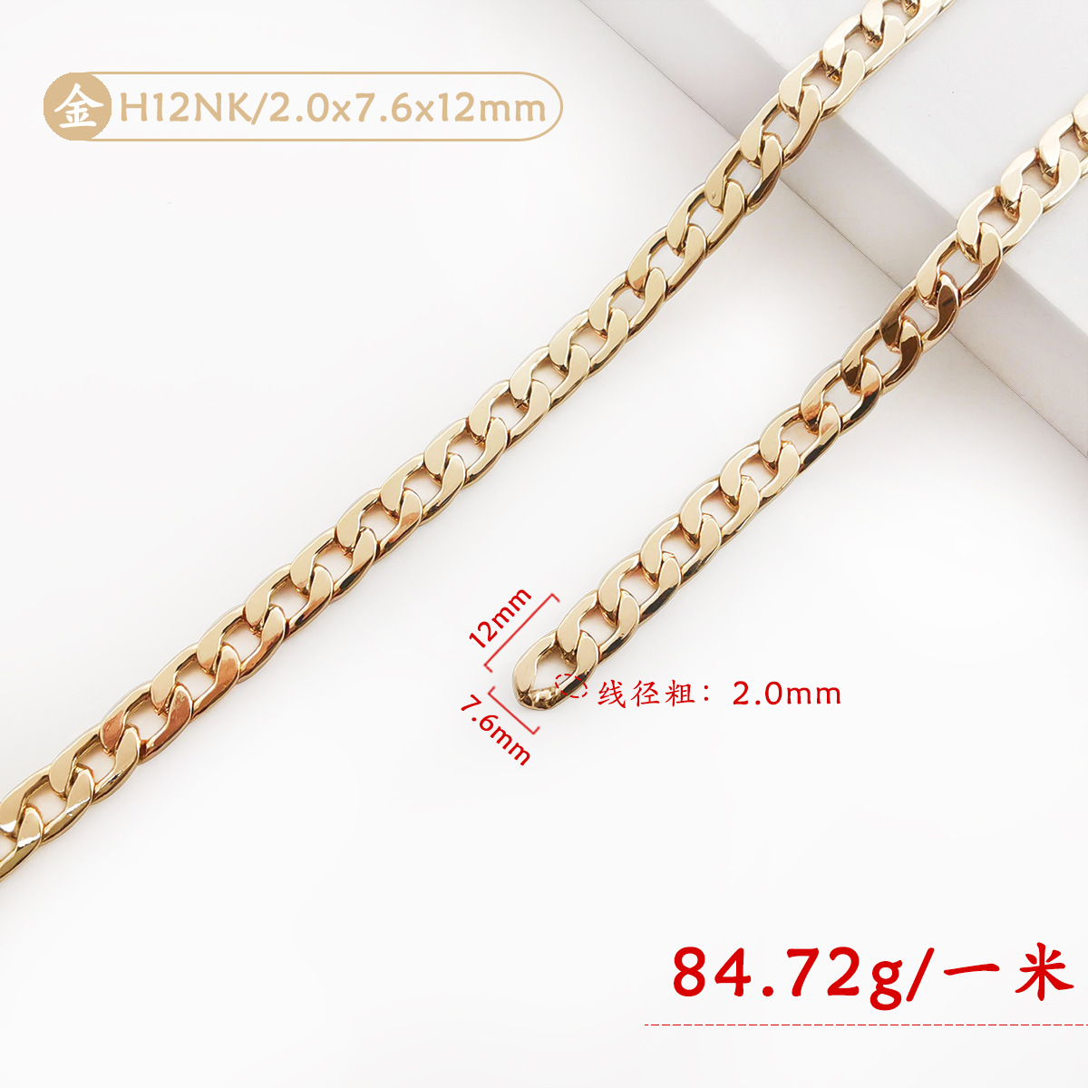 • H12NK-001 (금) 2.0x7.6x12mm 플랫 아이언 체인