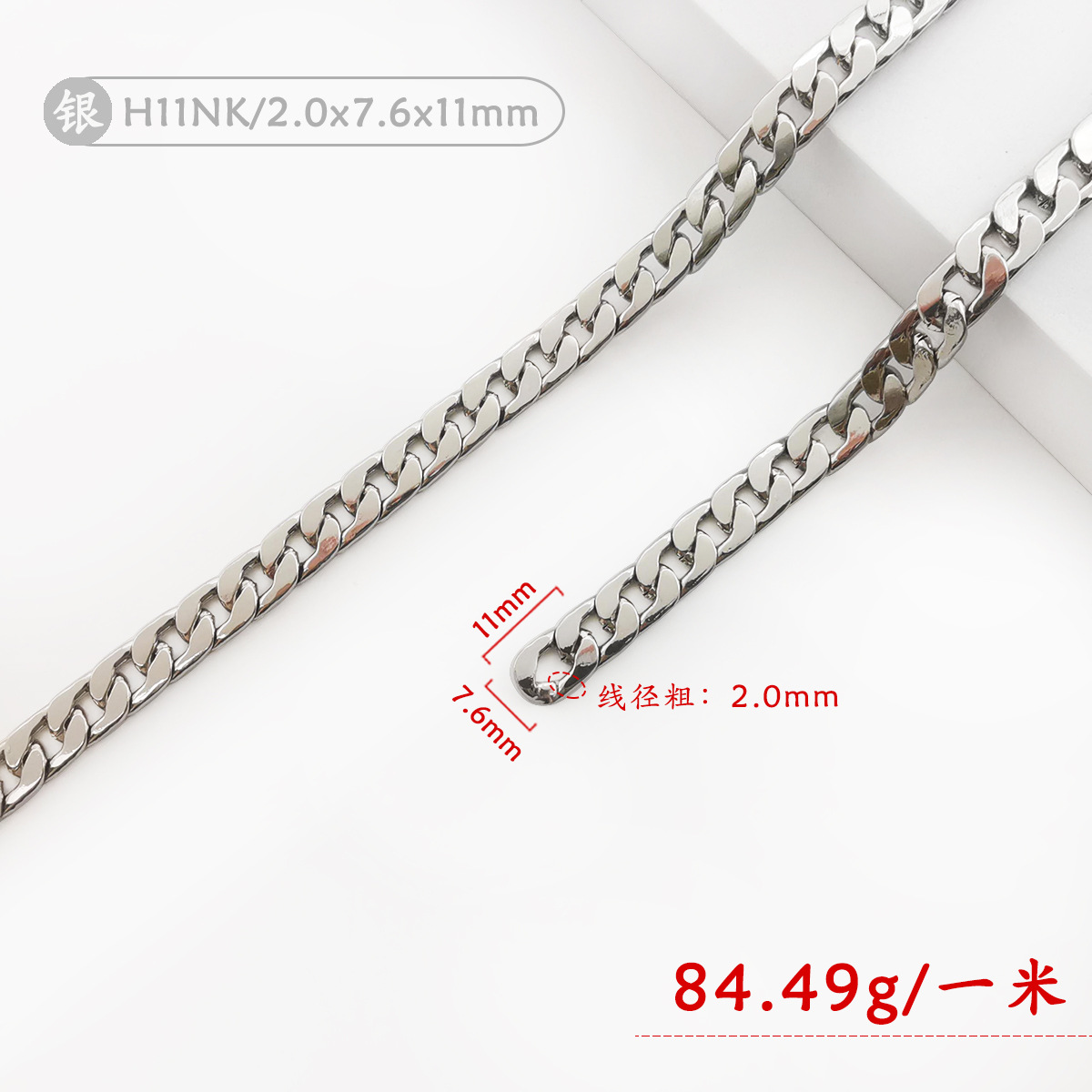 • H11NK-002 (실버) 2.0x7.6x11mm 플랫 아이언 체인