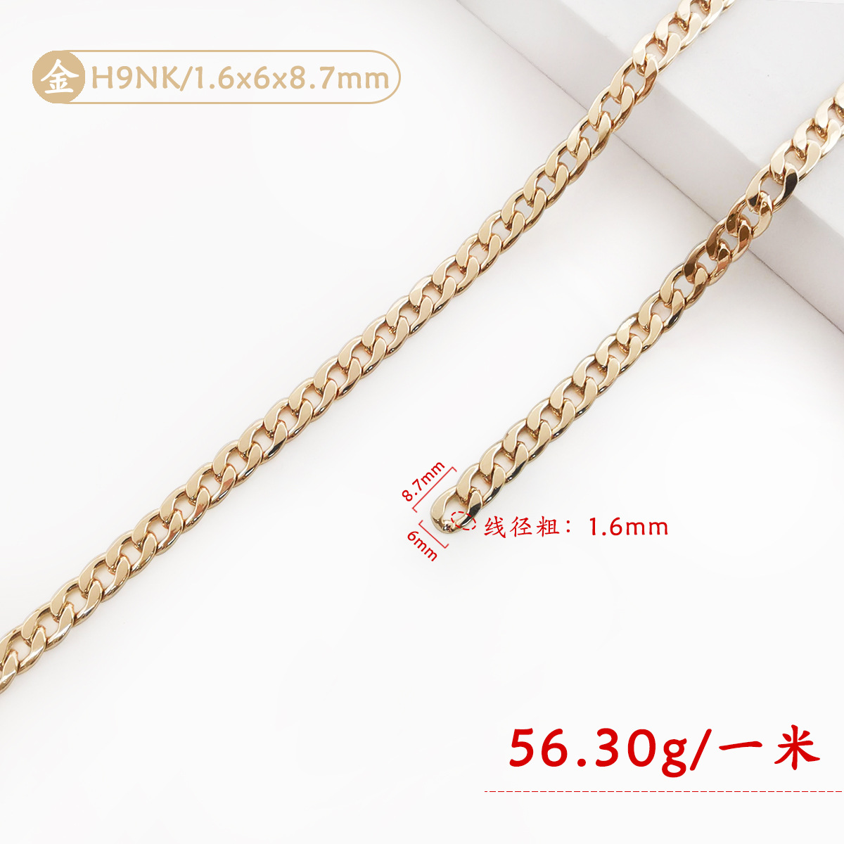 • H9NK-001 (금) 1.6x6x8.7mm 플랫 아이언 체인