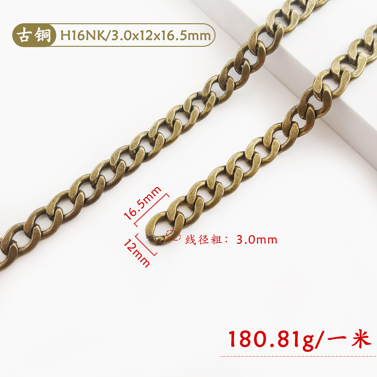 • H16NK-003 (총 색상) 3.0x12x16.5mm 플랫 철 체인
