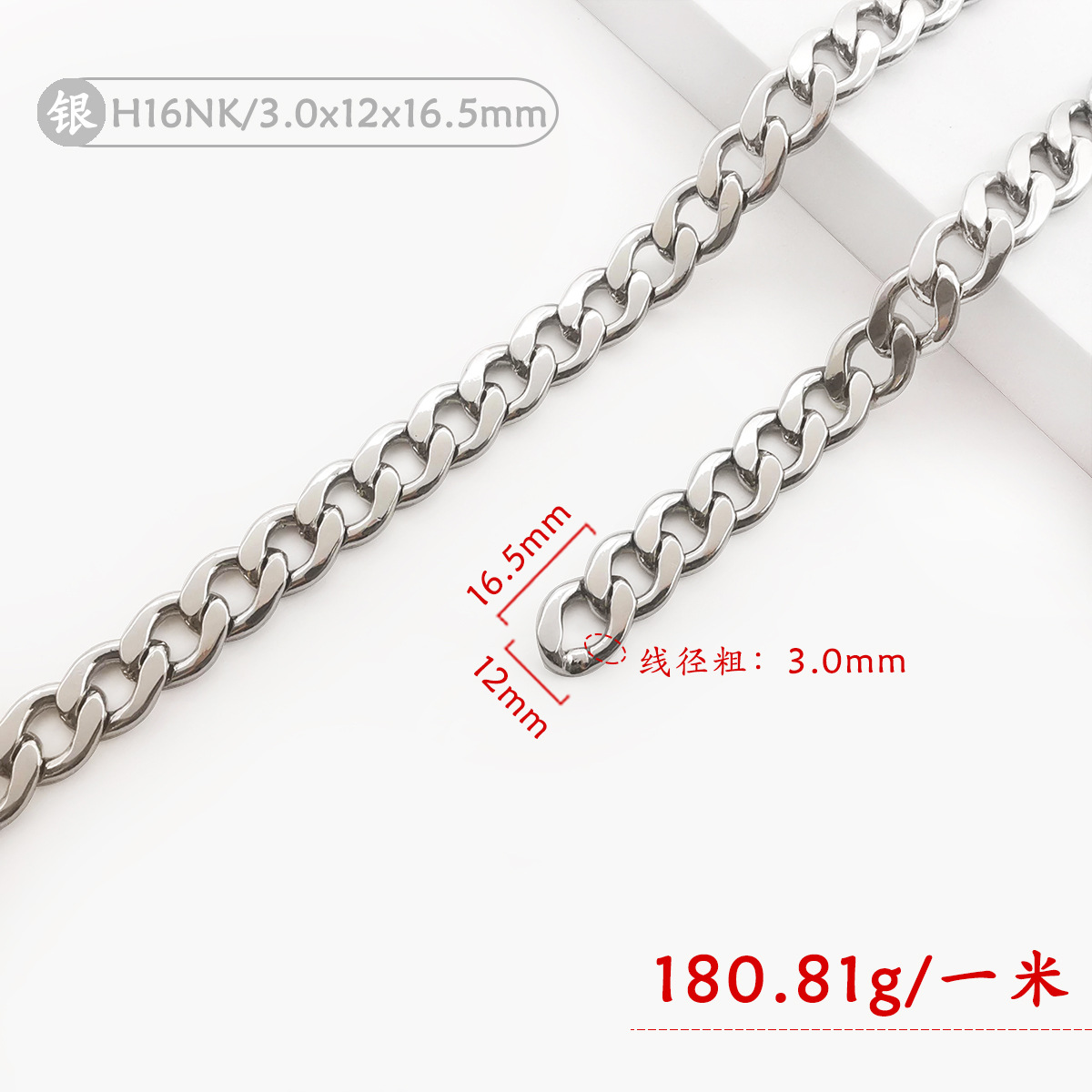 • H16NK-002 (실버) 3.0x12x16.5mm 플랫 체인