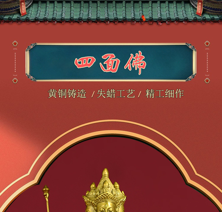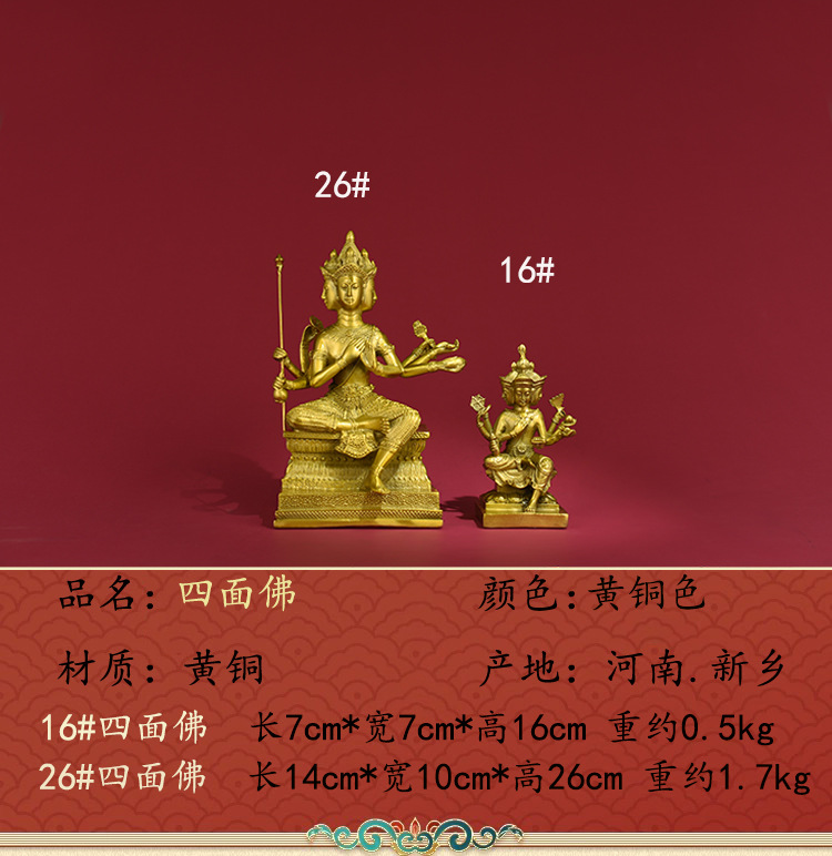 순수 구리 태국 4 면 부처 Dafan 왕 비밀 부처 청동 동상 장식품 부처 홀 청동 동상스토어 가기