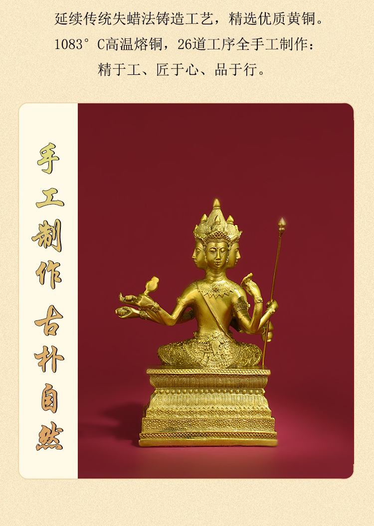 순수 구리 태국 4 면 부처 Dafan 왕 비밀 부처 청동 동상 장식품 부처 홀 청동 동상