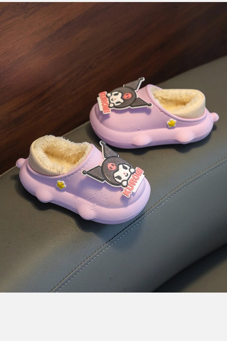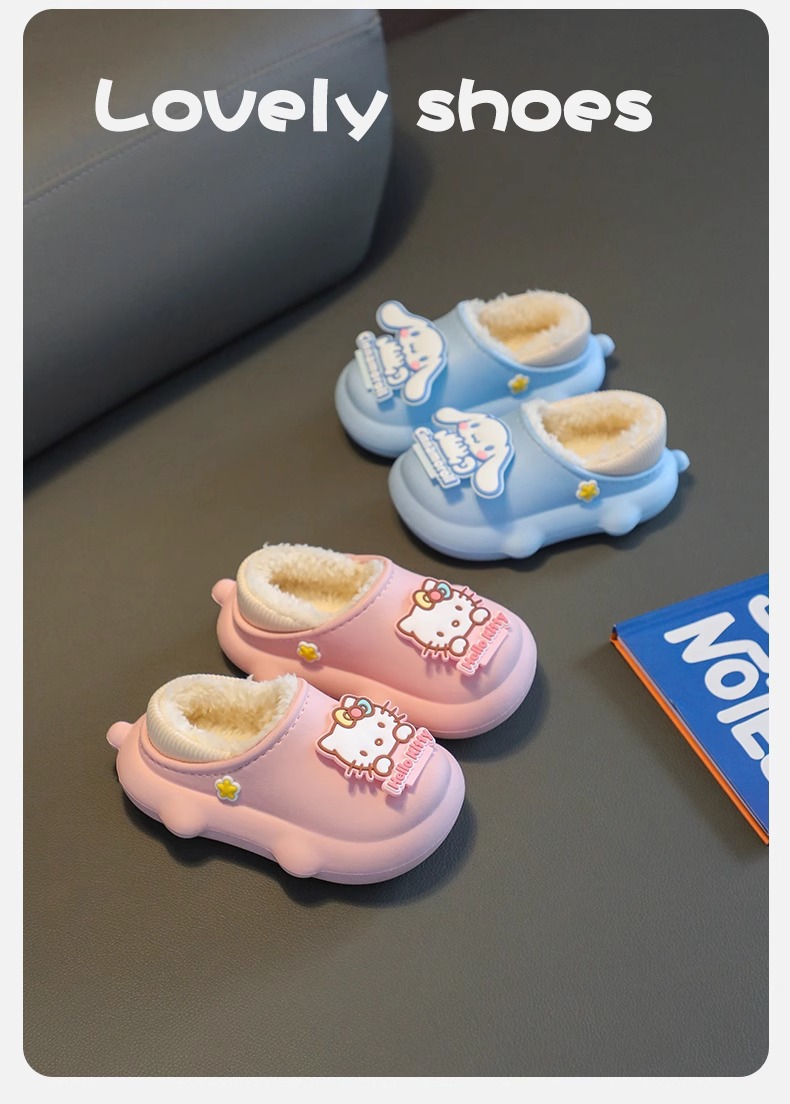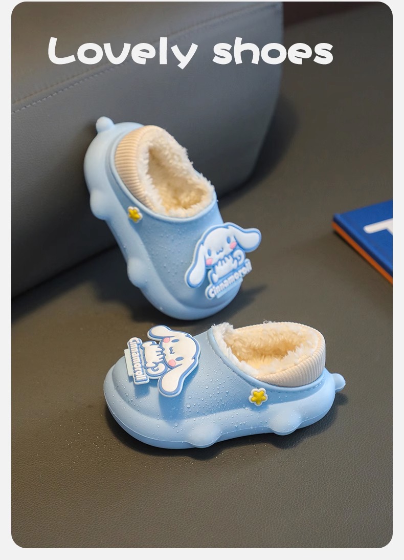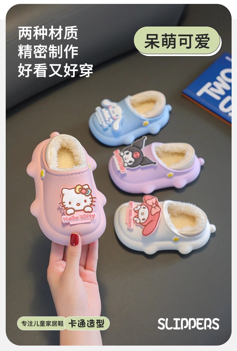 크로스 미러 가을과 겨울 모든 것을 포함하는 어린이 면화 슬리퍼 산리오 만화 소녀 플러시 홈 슬리퍼 따뜻한면 신발 방수