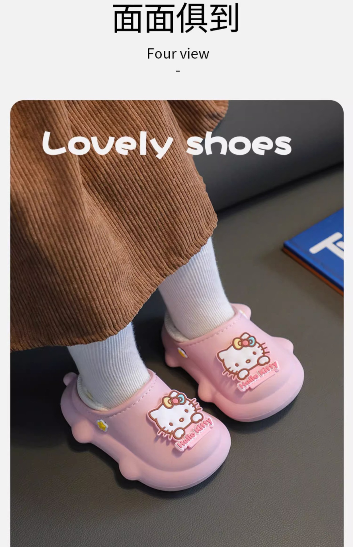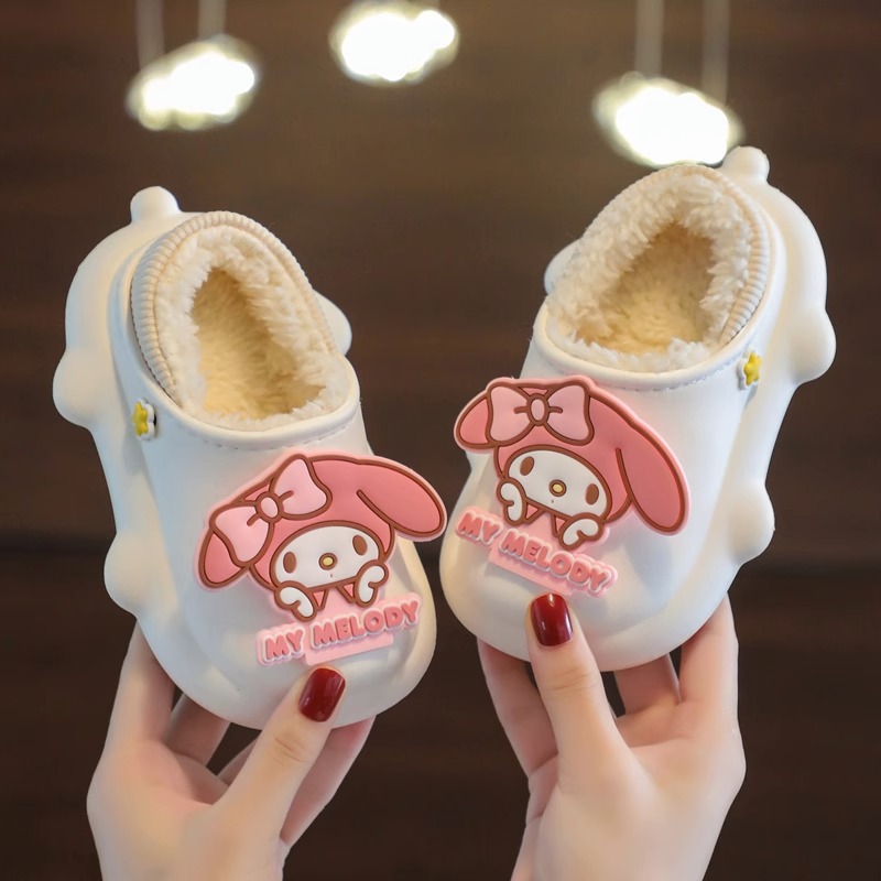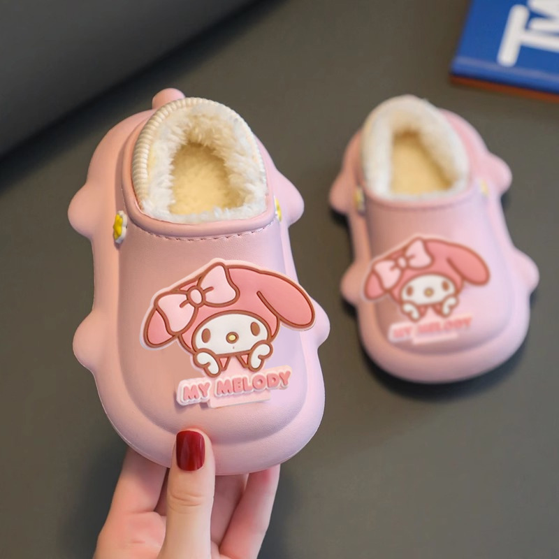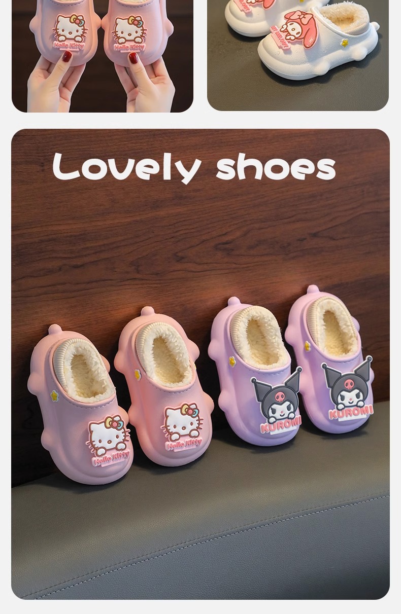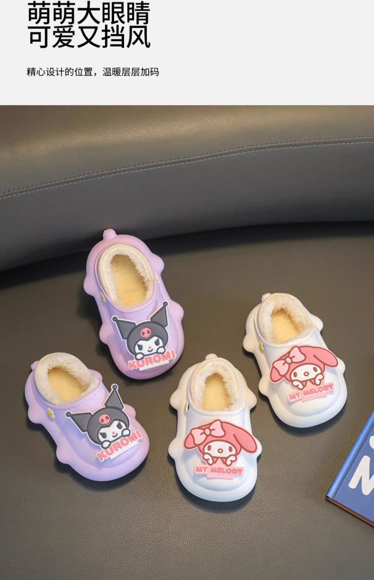 크로스 미러 가을과 겨울 모든 것을 포함하는 어린이 면화 슬리퍼 산리오 만화 소녀 플러시 홈 슬리퍼 따뜻한면 신발 방수