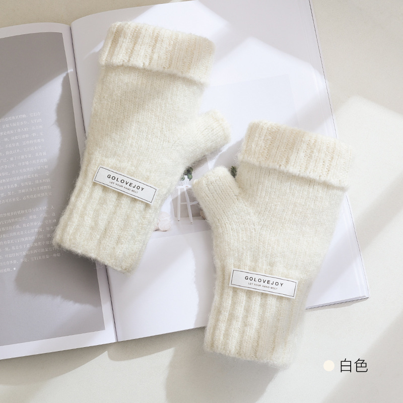 가을과 겨울 새로운 니트 장갑 여자의 야외 기모 두꺼운 따뜻한 반 손가락 터치 스크린 울 장갑 샤넬 스타일스토어 가기