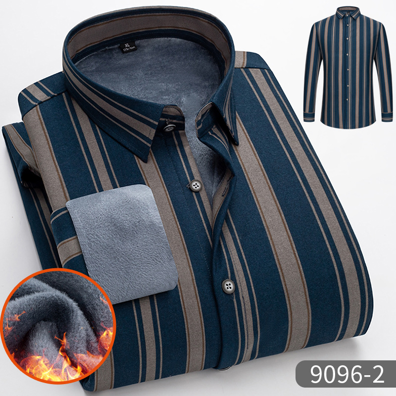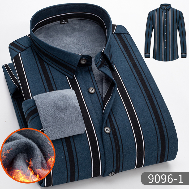 가을과 겨울 따뜻한 셔츠 남자의 긴팔 기모 두꺼운 캐주얼 격자 무늬 중년 및 노인 아빠의 양털 내부 셔츠스토어 가기