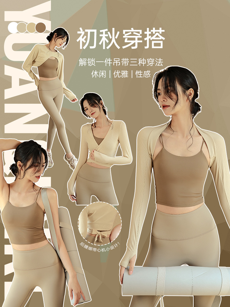 카키 시리즈 가을과 겨울 스포츠 요가 의류 통기성 실행 고급 기질 훈련 여성을위한 피트니스 의류스토어 가기