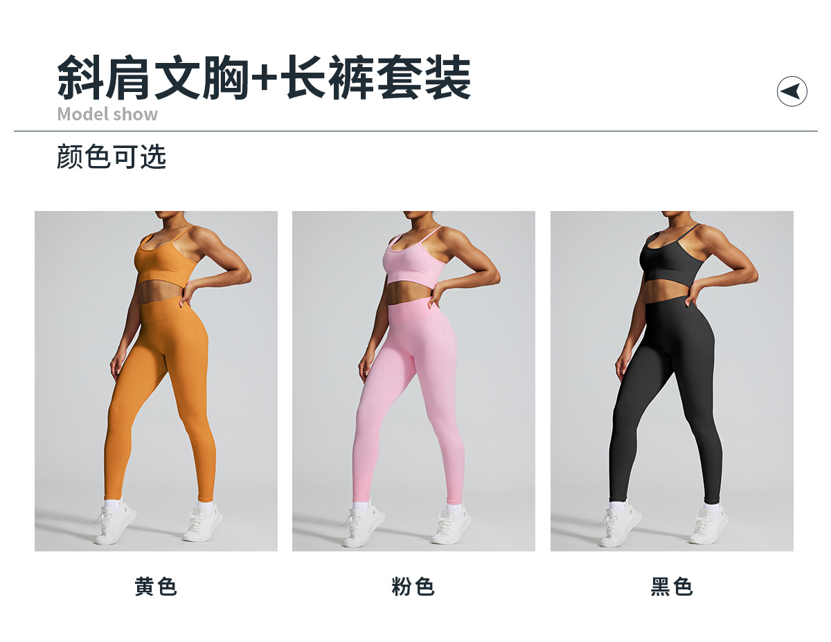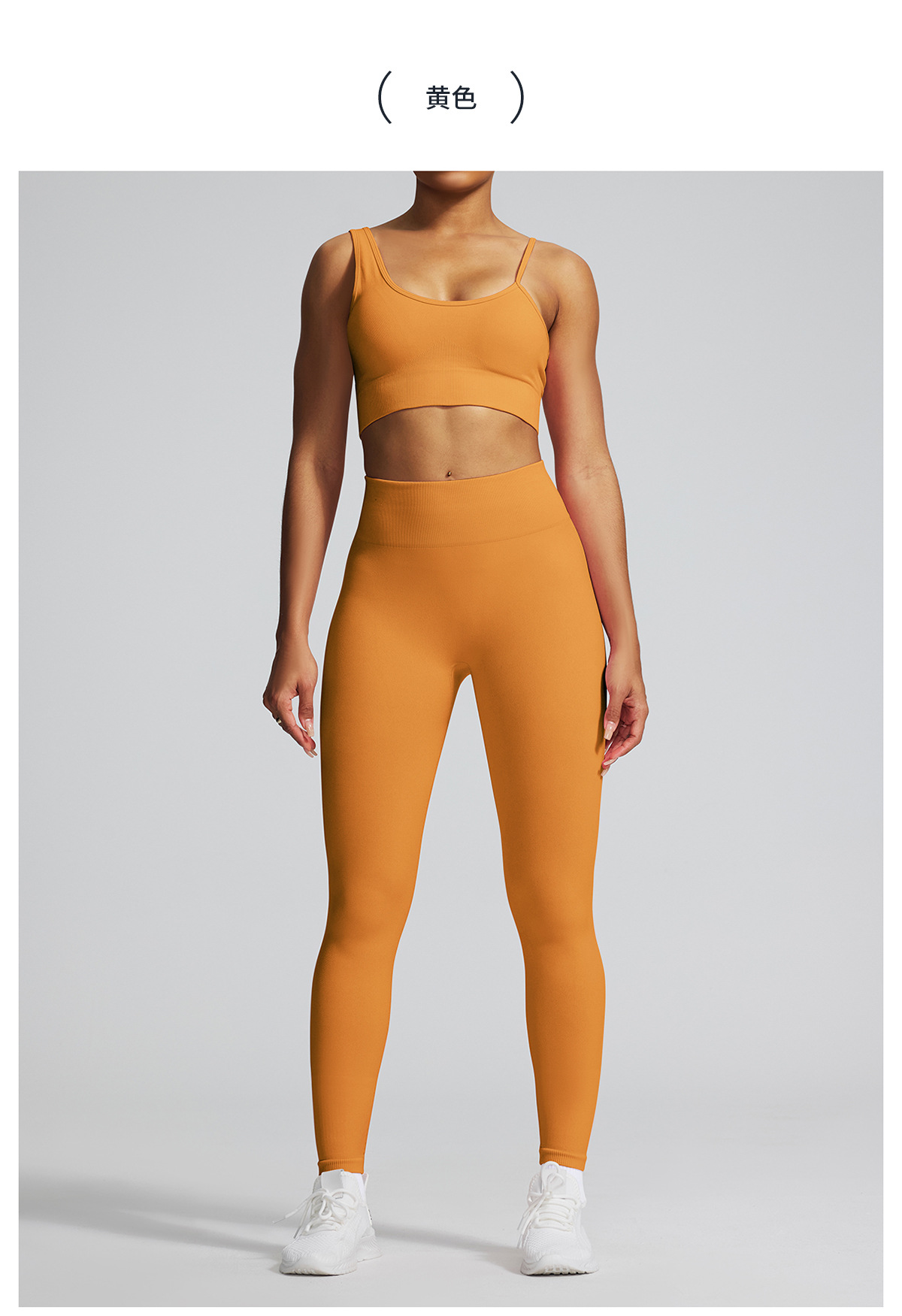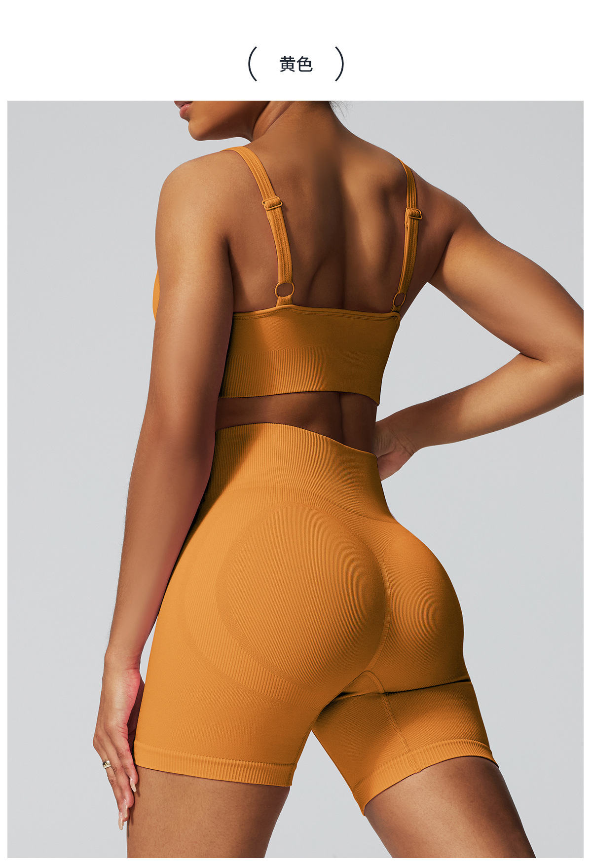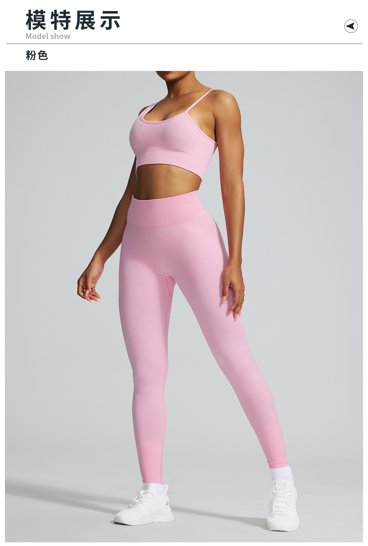 크로스보더 유럽 및 미국 스타일 심리스 요가복 세트, 타이트핏 스포츠 세트, 속건성 힙업 런닝 피트니스복 세트 (여성용)스토어 가기