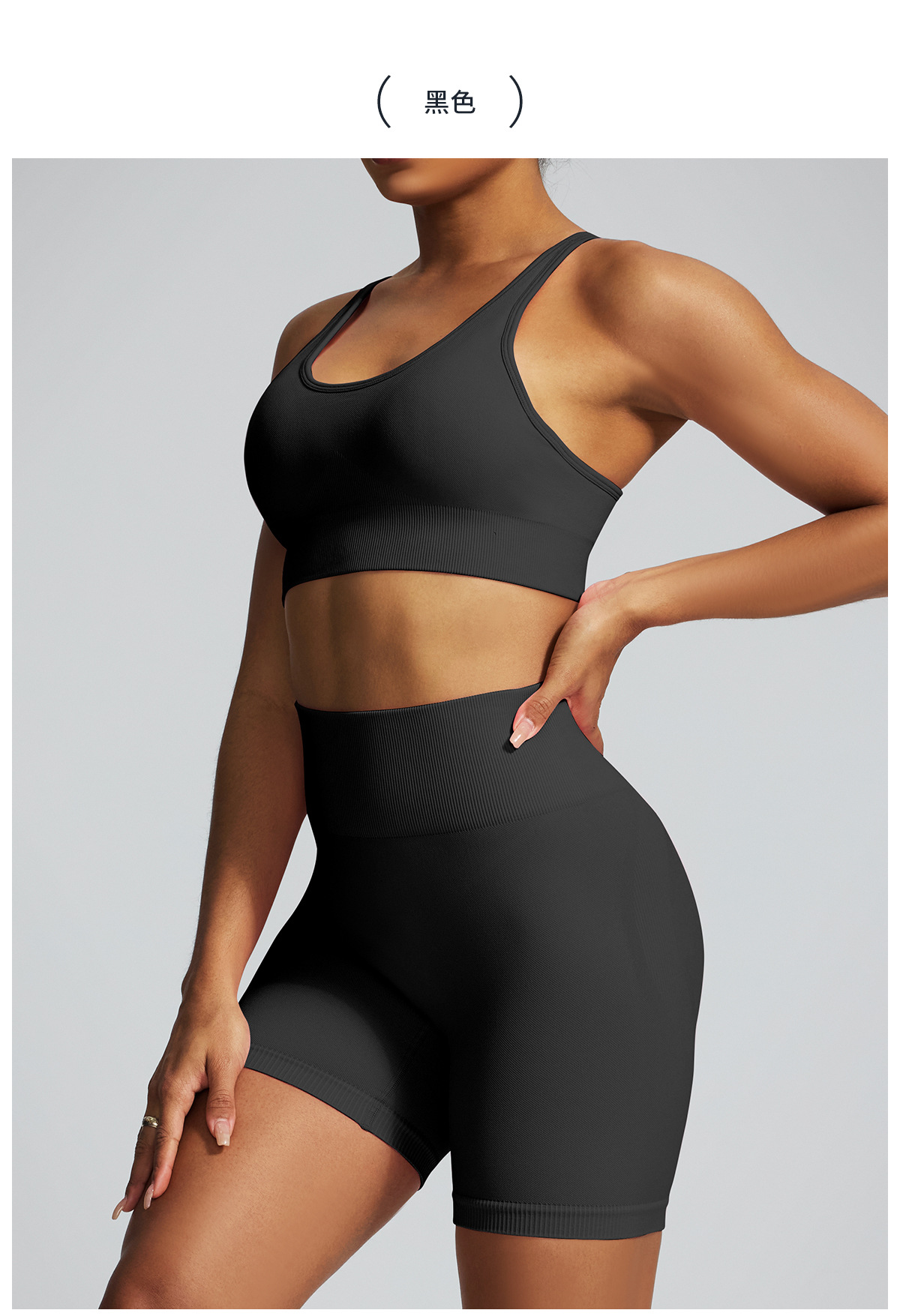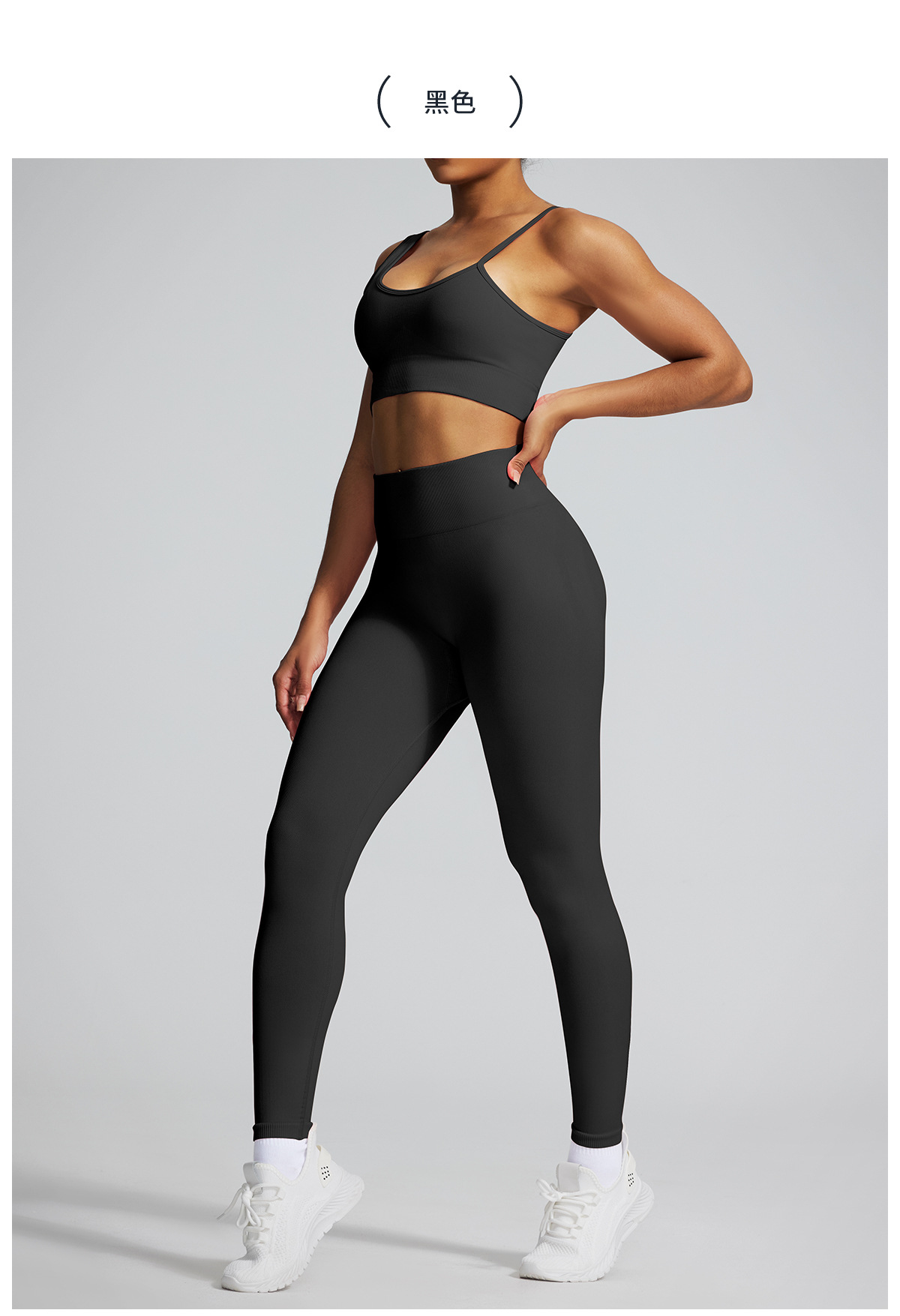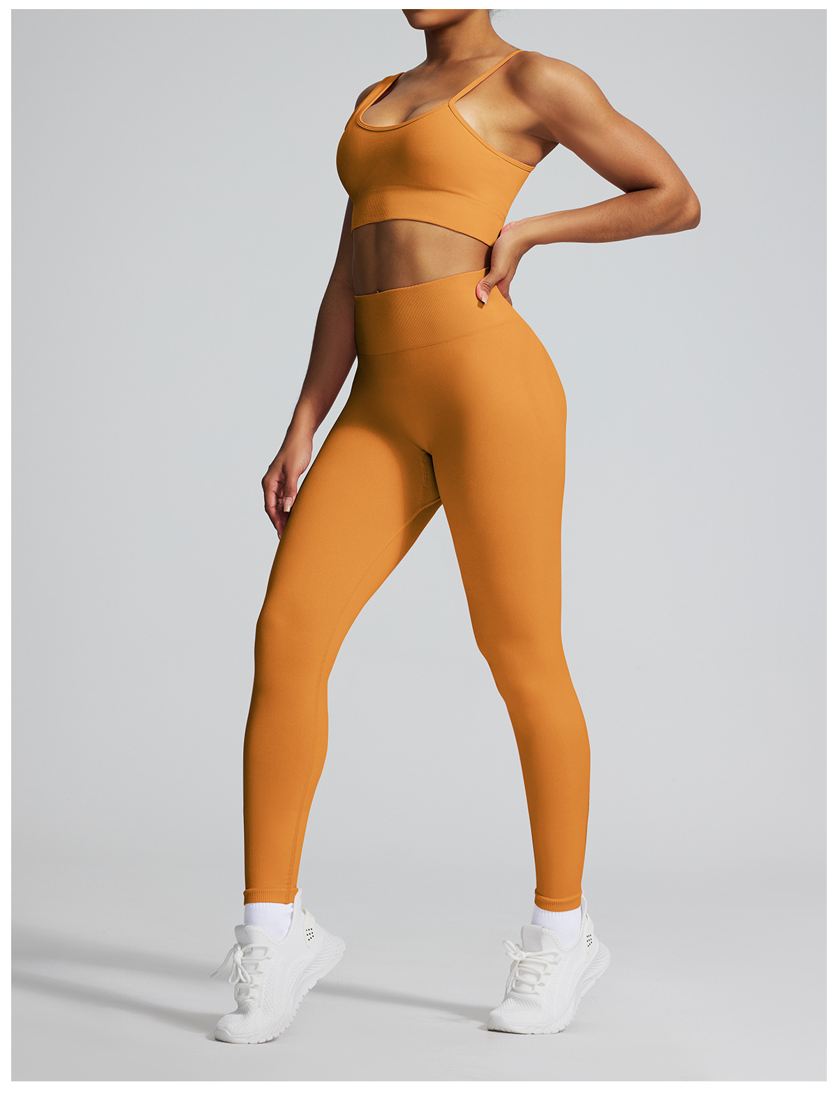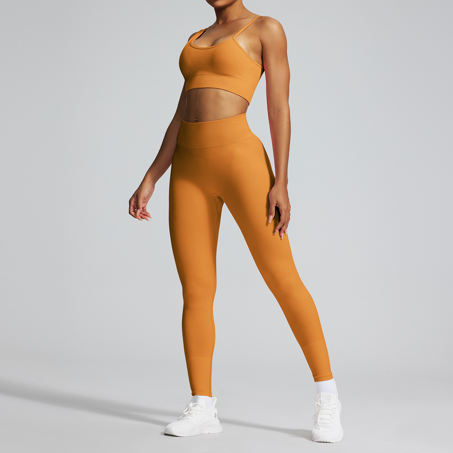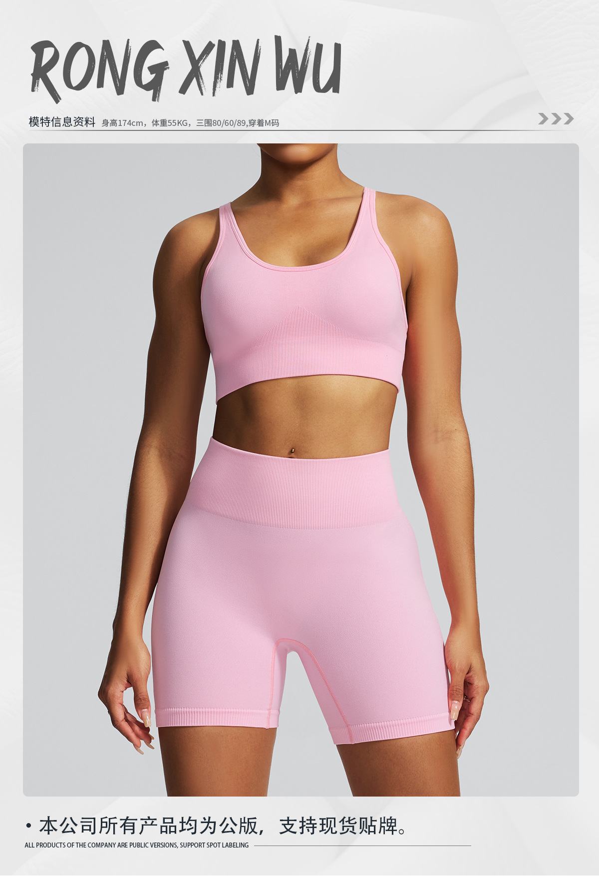 크로스보더 유럽 및 미국 스타일 심리스 요가복 세트, 타이트핏 스포츠 세트, 속건성 힙업 런닝 피트니스복 세트 (여성용)스토어 가기