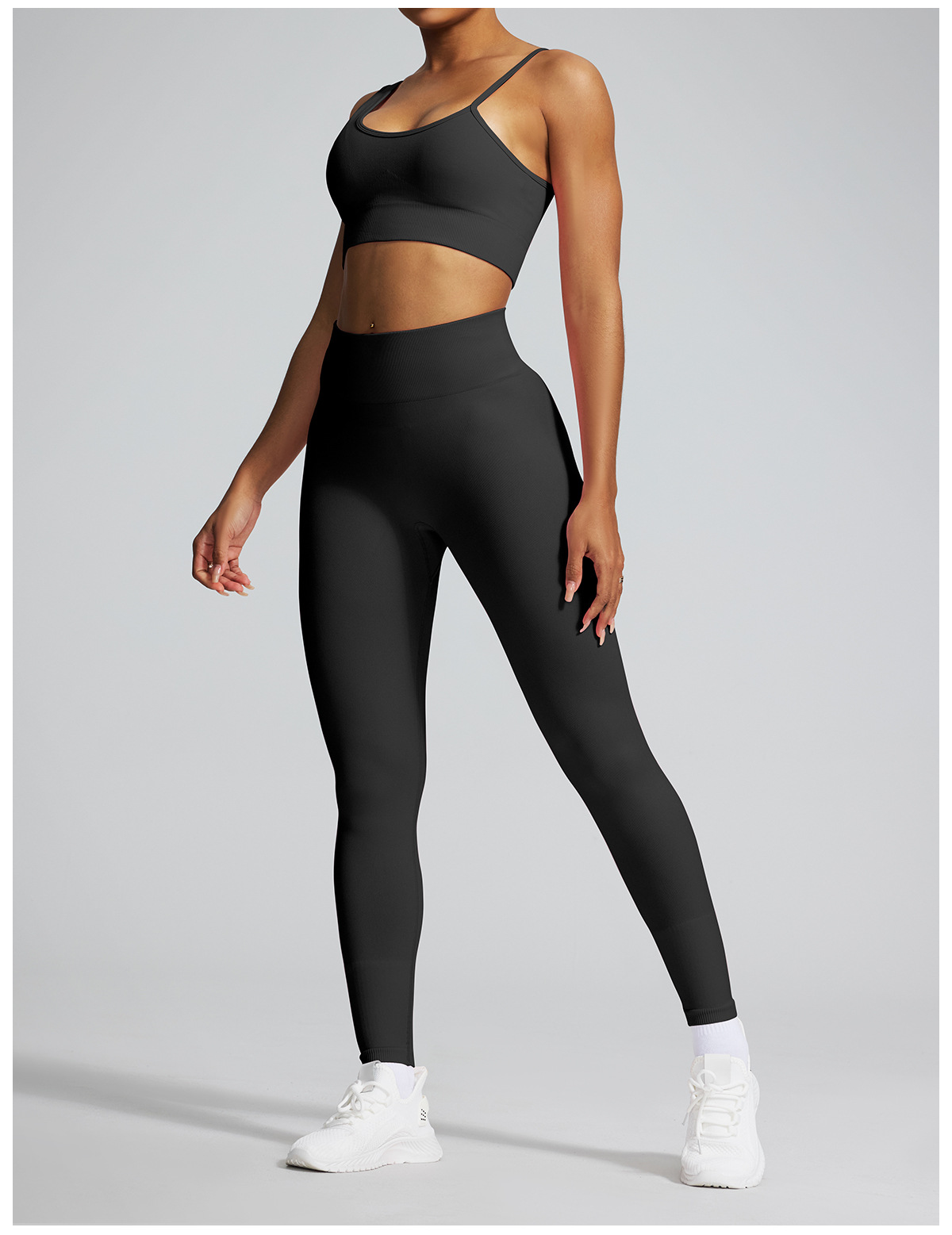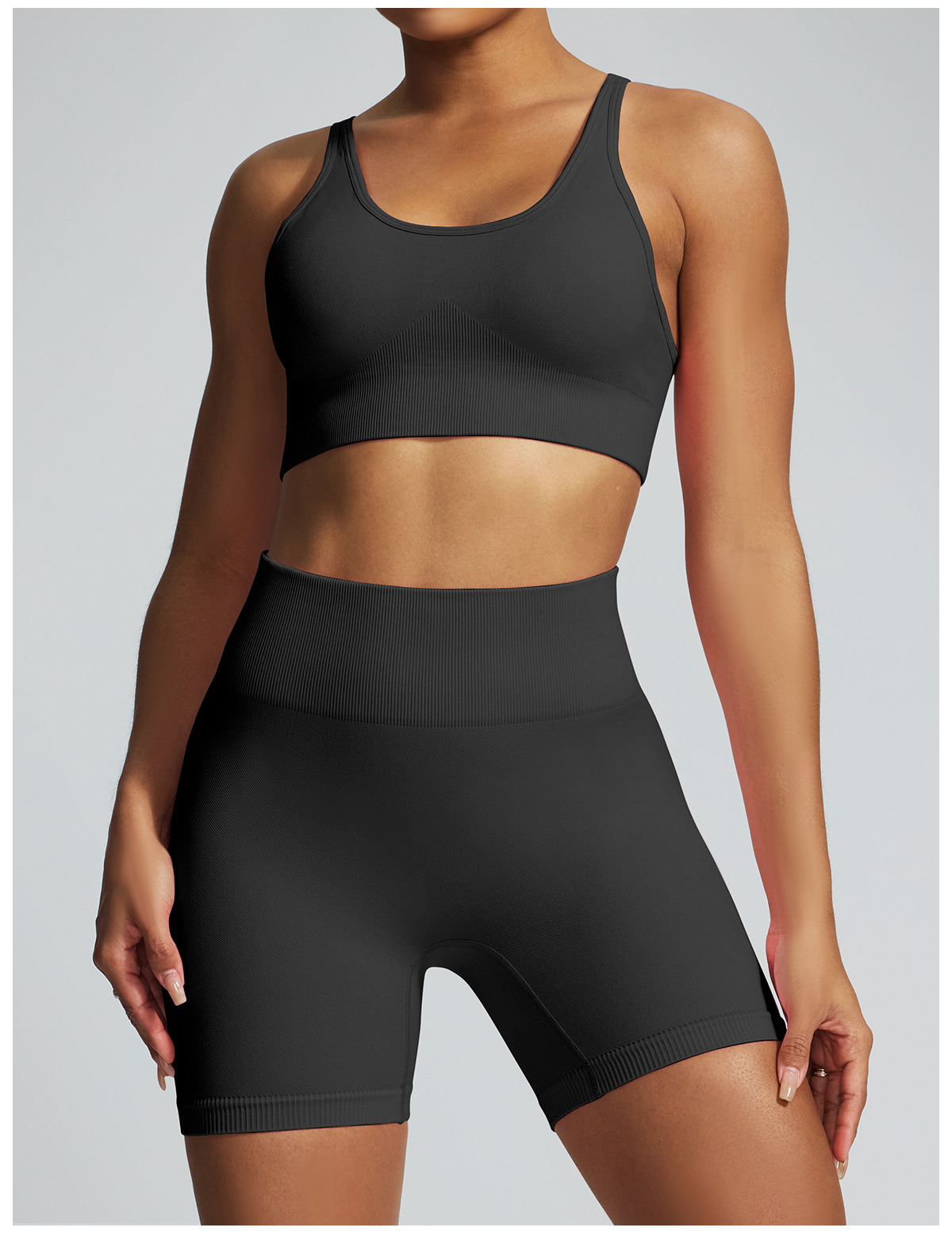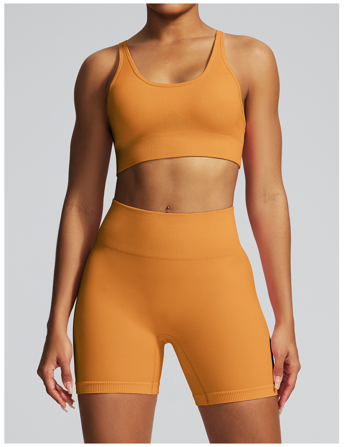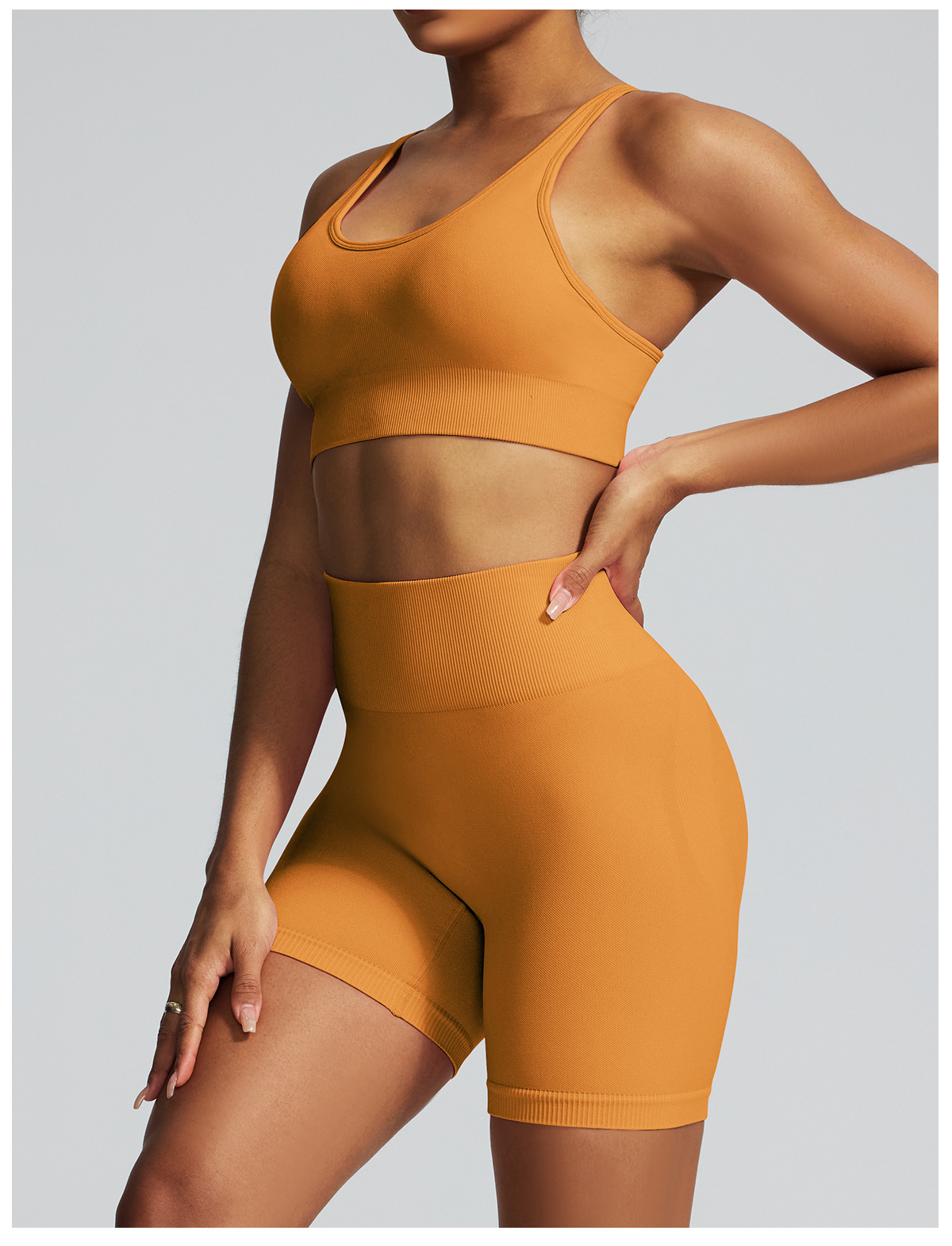 크로스보더 유럽 및 미국 스타일 심리스 요가복 세트, 타이트핏 스포츠 세트, 속건성 힙업 런닝 피트니스복 세트 (여성용)스토어 가기