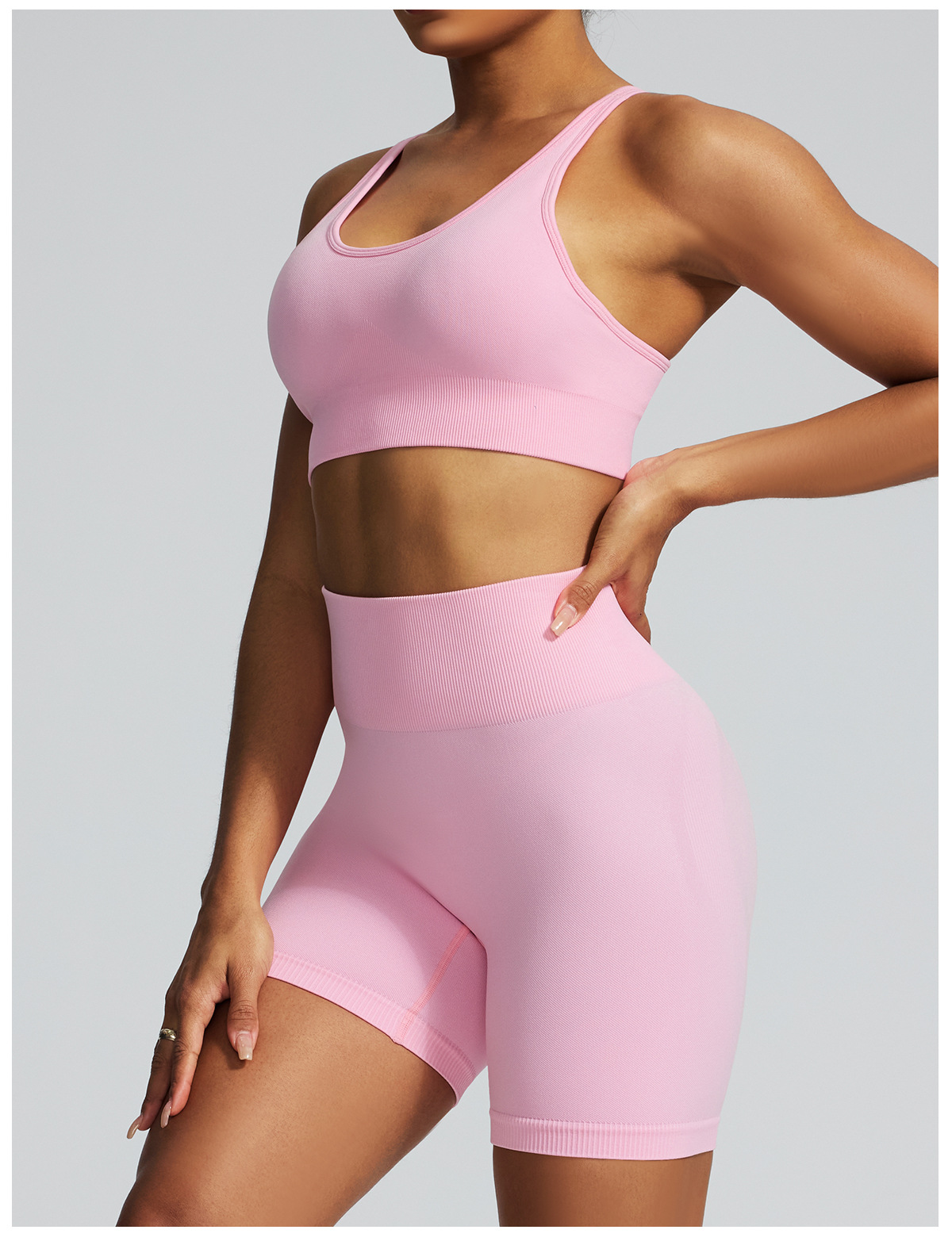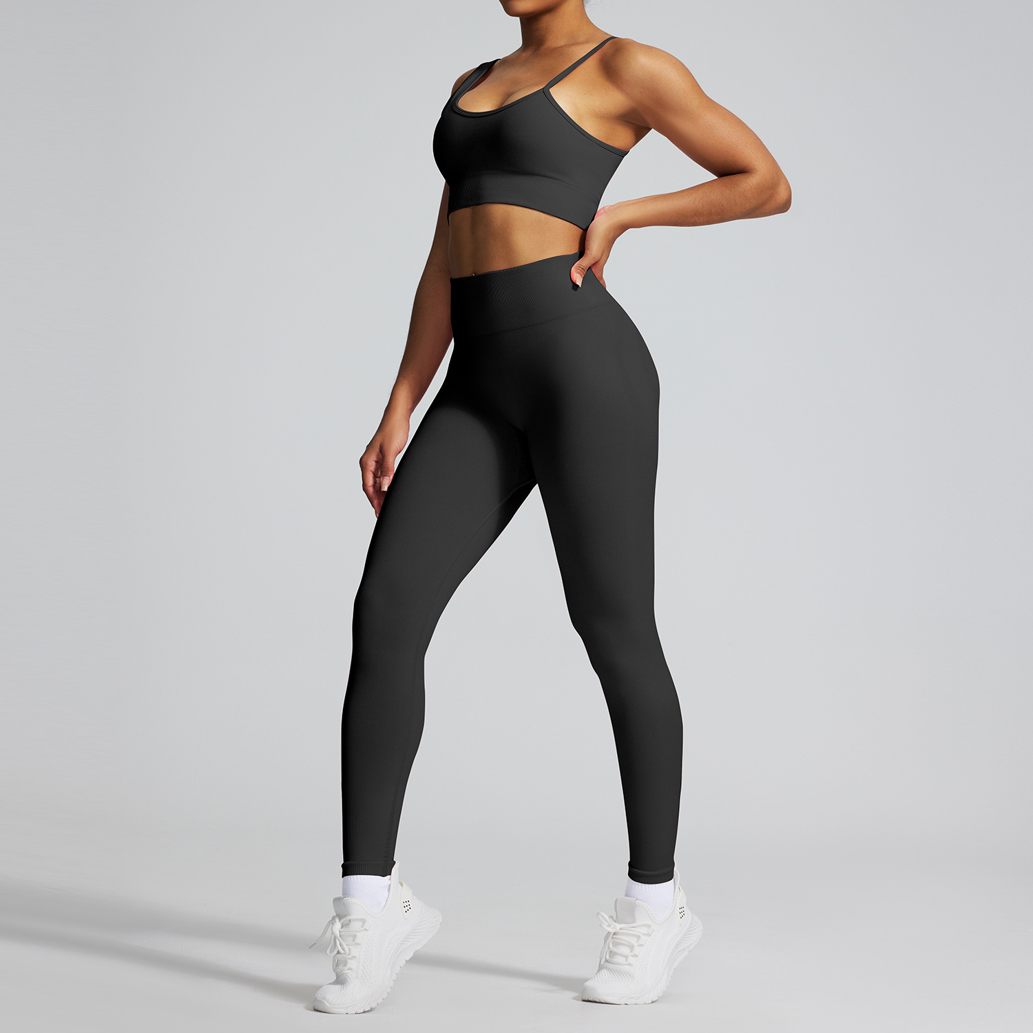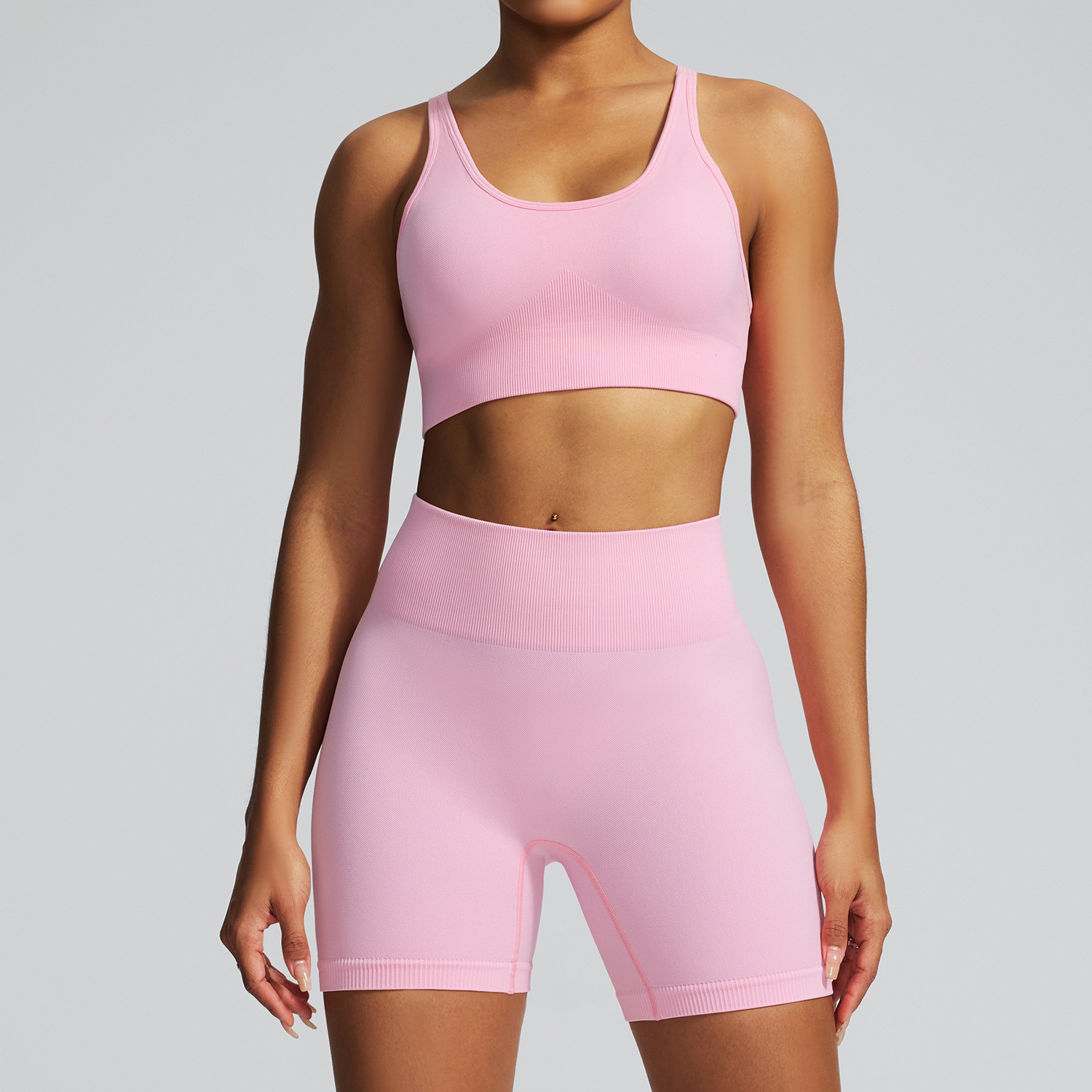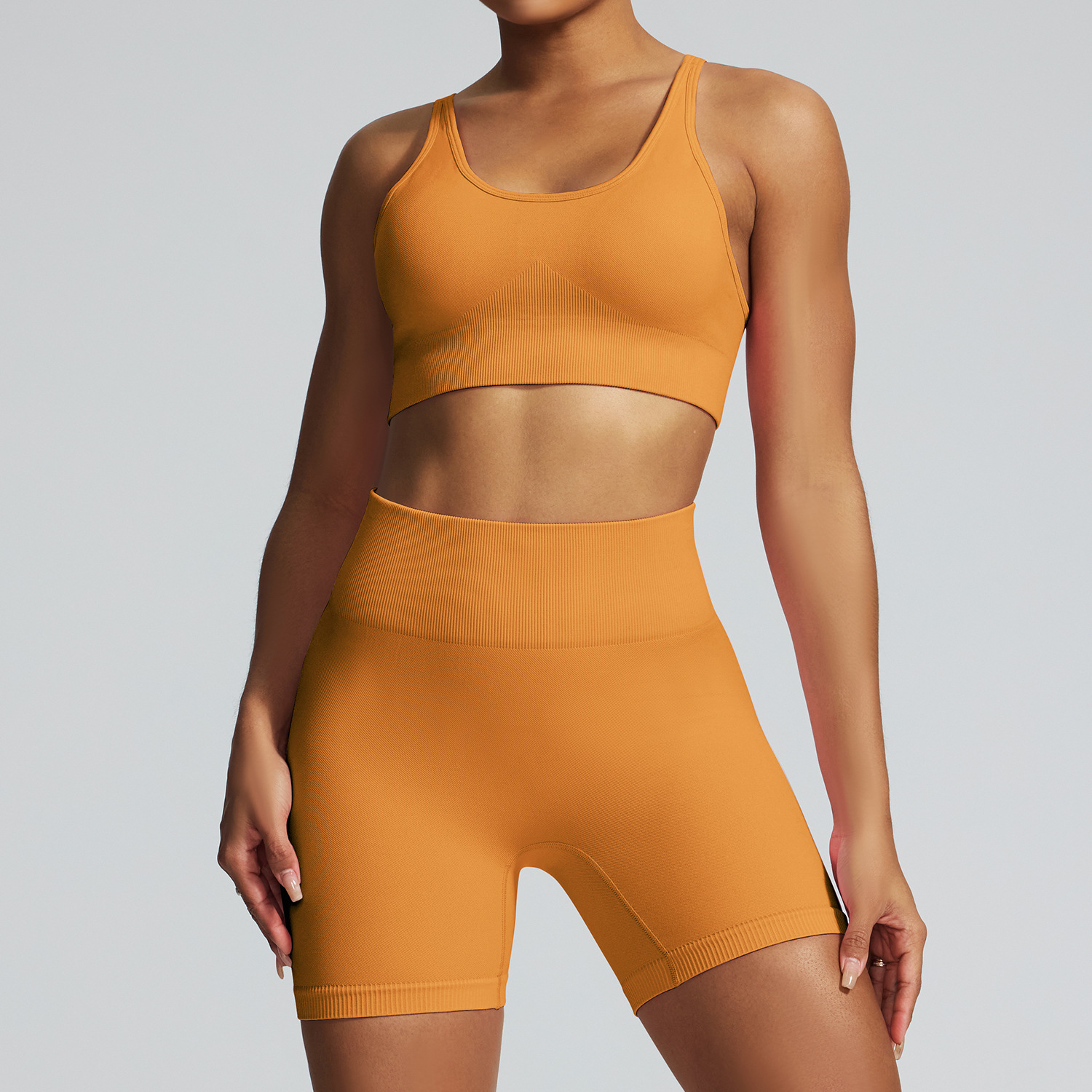 크로스보더 유럽 및 미국 스타일 심리스 요가복 세트, 타이트핏 스포츠 세트, 속건성 힙업 런닝 피트니스복 세트 (여성용)스토어 가기