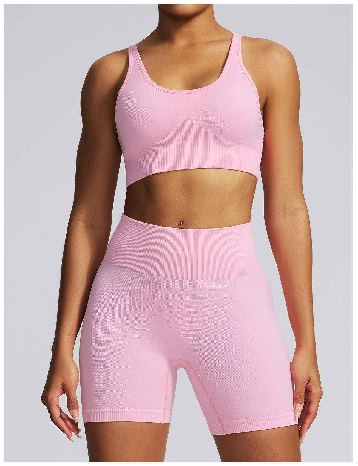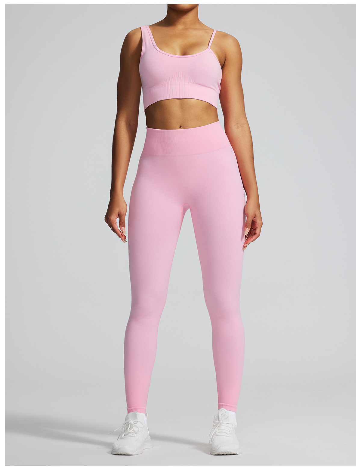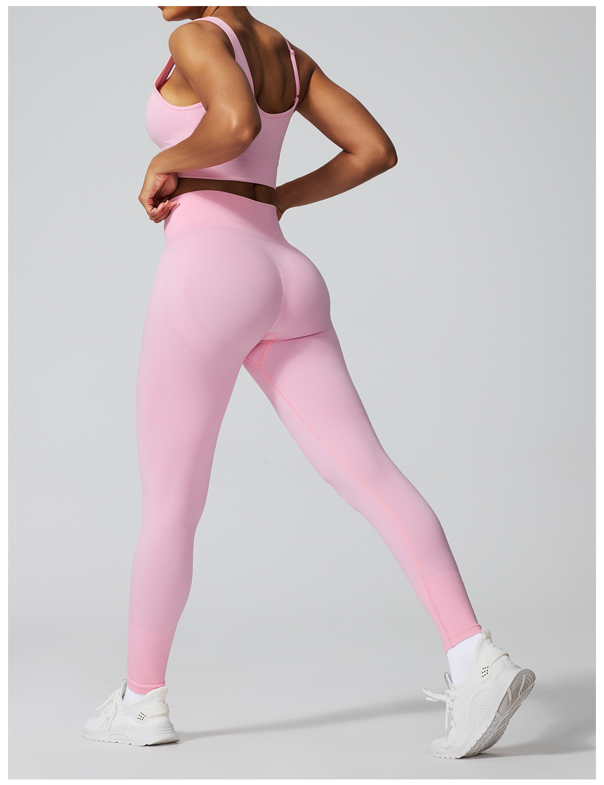 크로스보더 유럽 및 미국 스타일 심리스 요가복 세트, 타이트핏 스포츠 세트, 속건성 힙업 런닝 피트니스복 세트 (여성용)