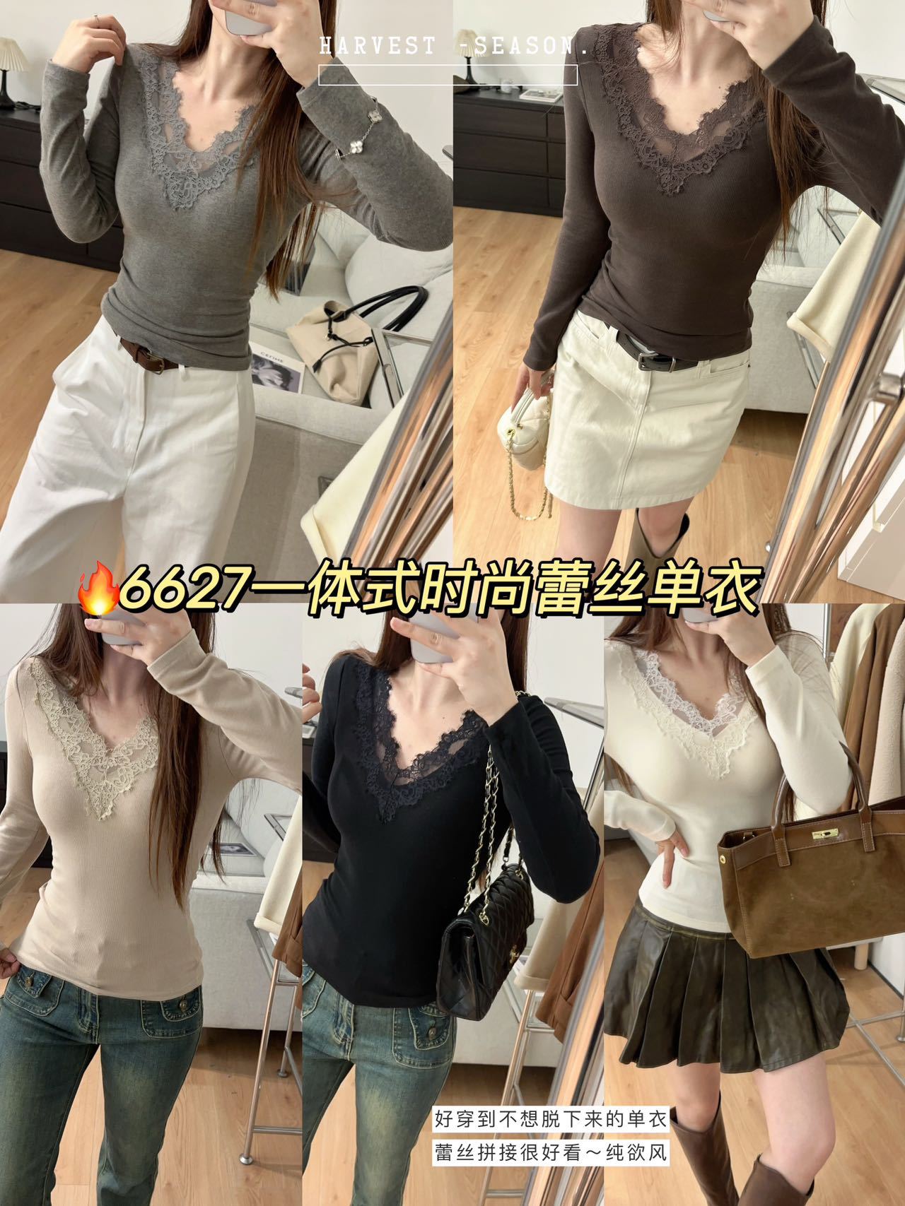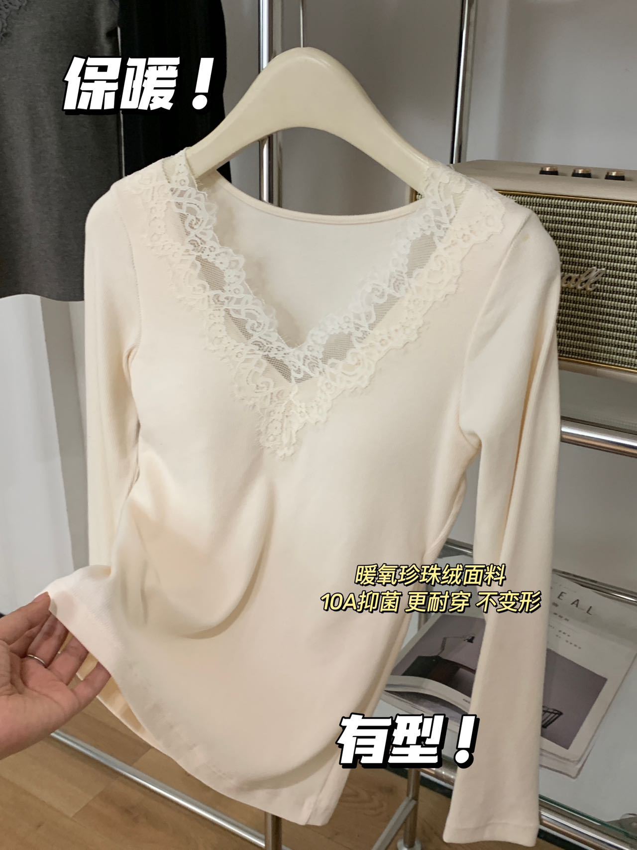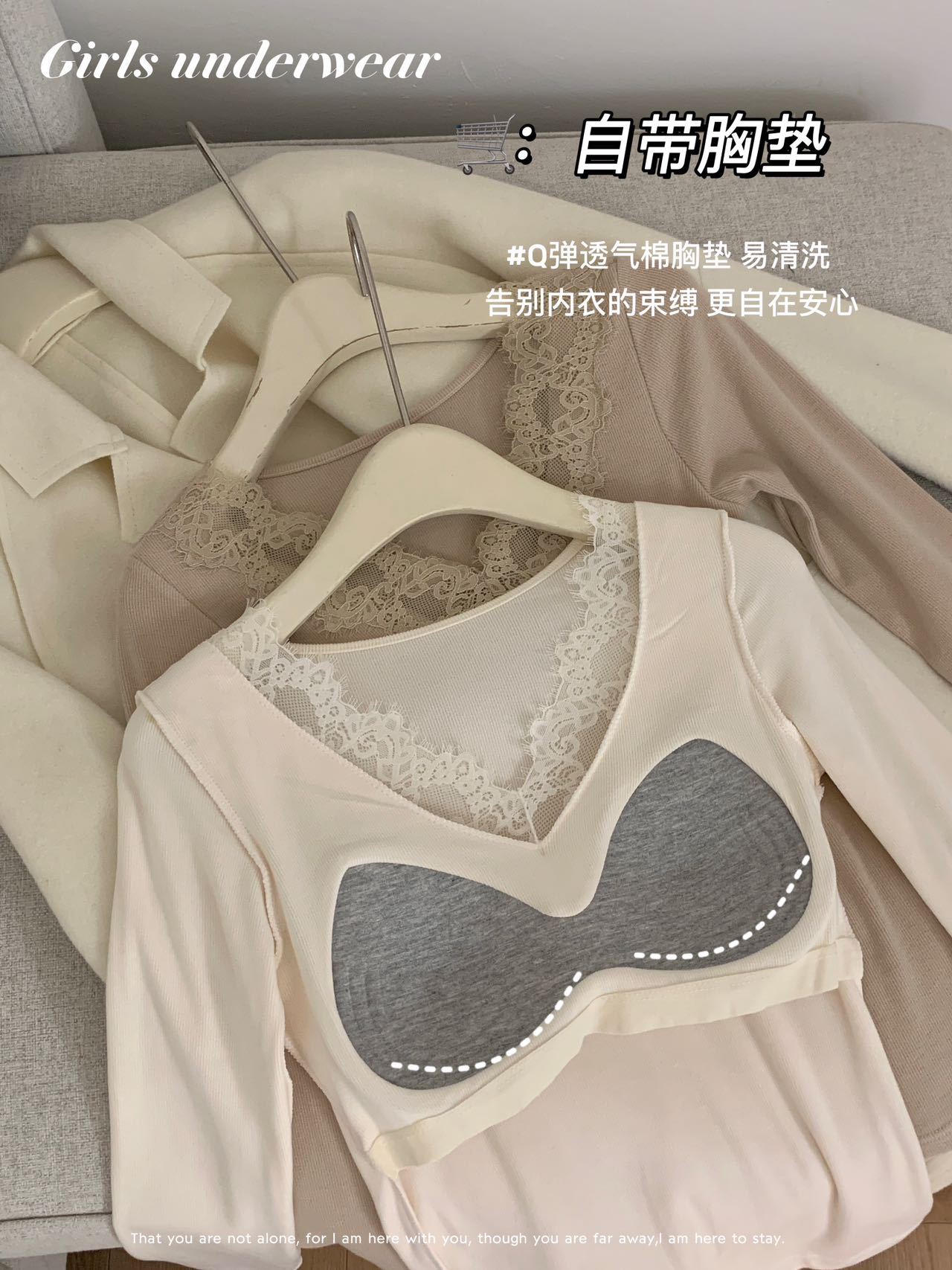가을 겨울 신상품 원피스형 패션 레이스 브이넥 탑 브라 내장형 원피스 베이스 레이어 가을 겨울 슬림핏 # 6627