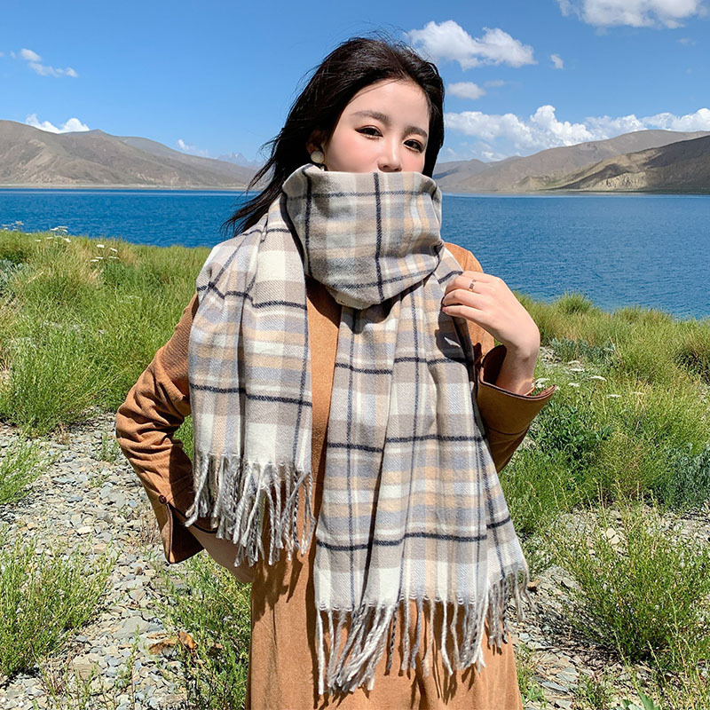 격자 무늬 스카프 여성의 일본과 한국 스타일 달콤한 색상 매칭 작은 격자 무늬 모든 매치 긴 술 색상 격자 무늬 숄 커플 패션 스카프스토어 가기