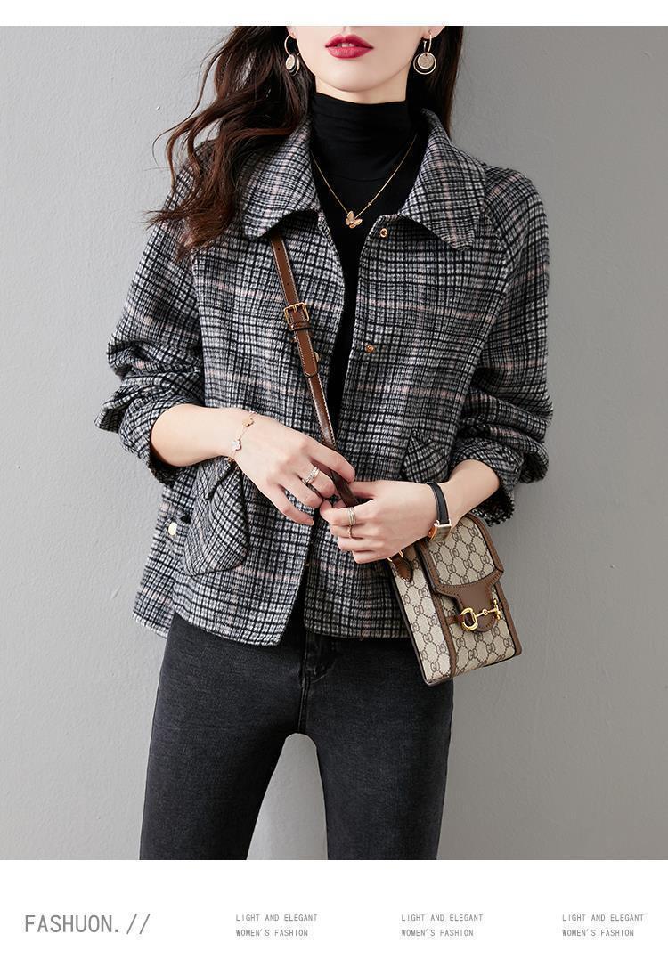 샤넬 스타일 모직 재킷 여성용 2023 가을과 겨울 새로운 한국 스타일 모든 매치 짧은 격자 무늬 트위드 재킷스토어 가기