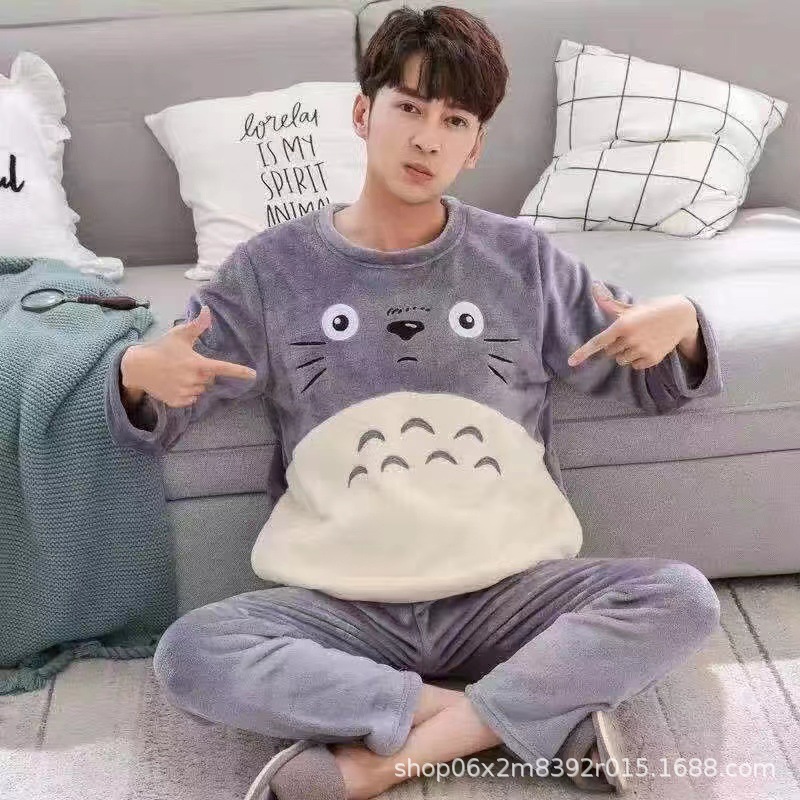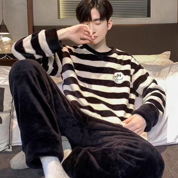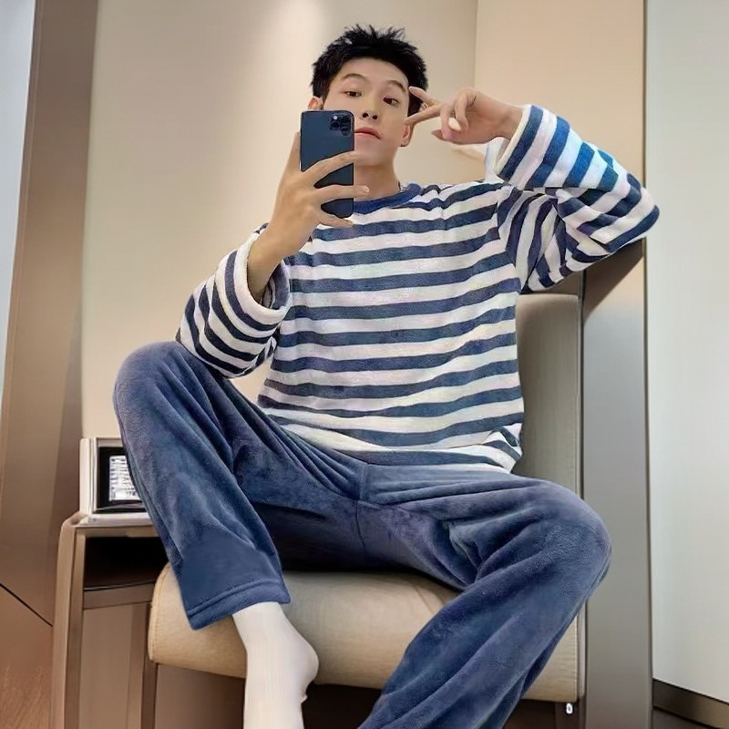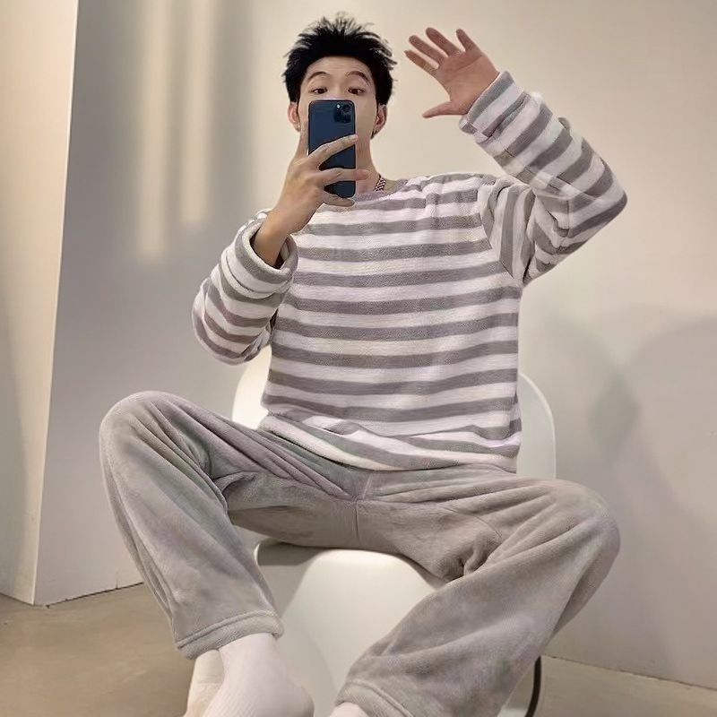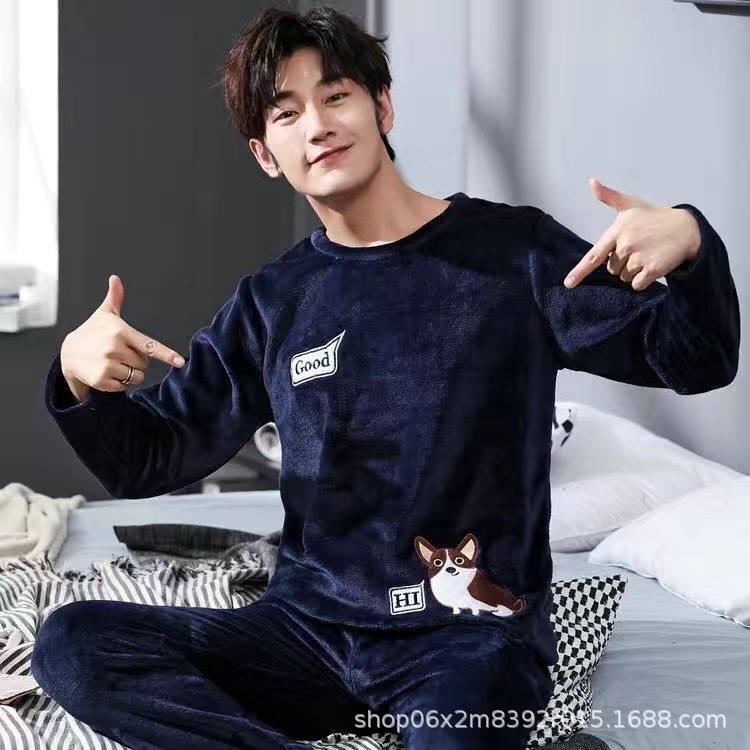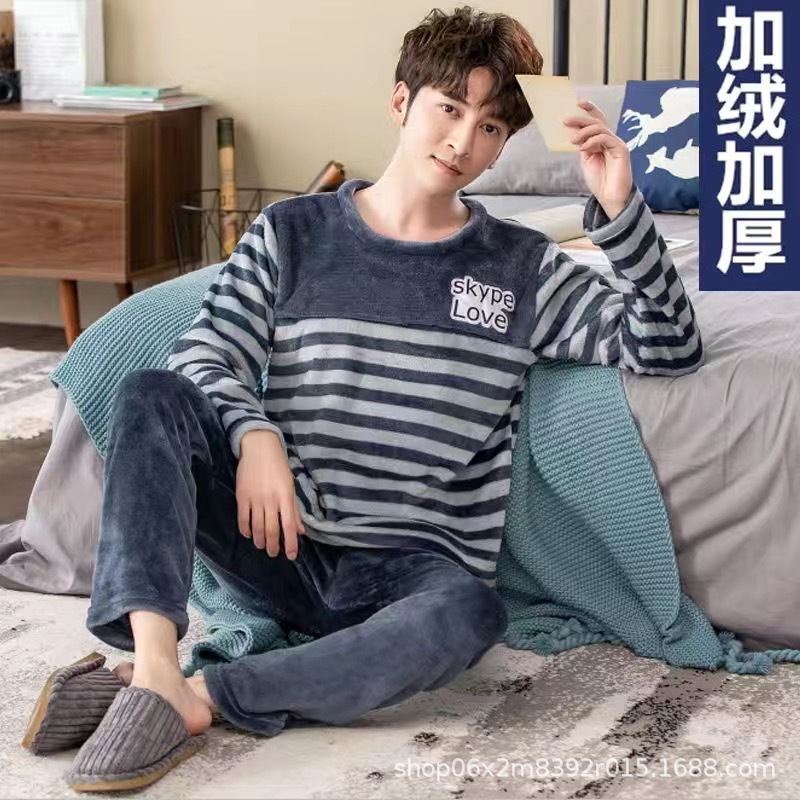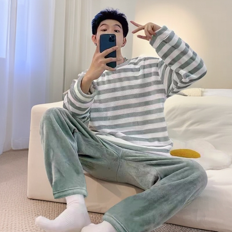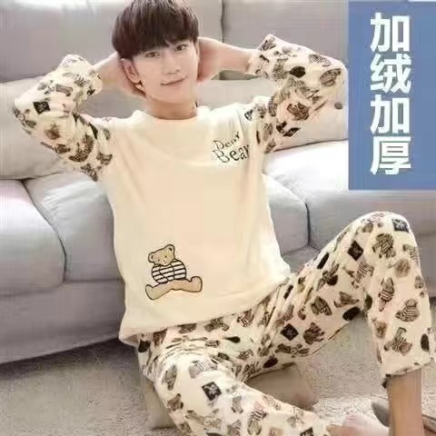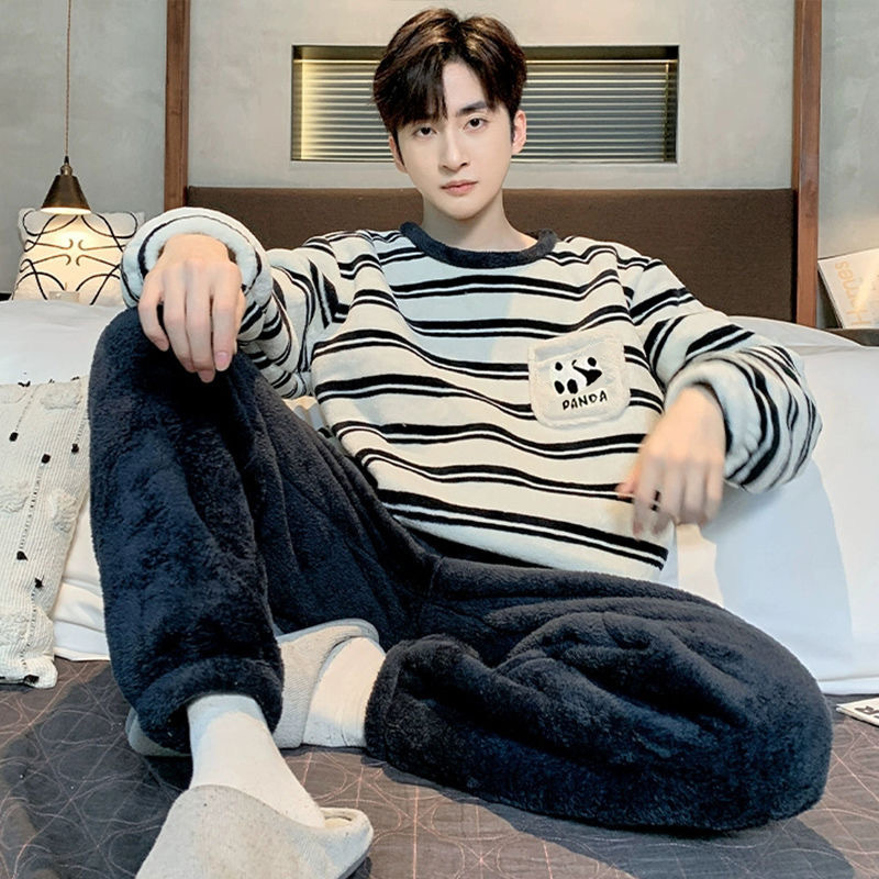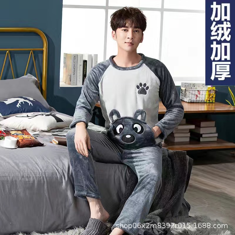 잠옷 남자의 겨울 산호 양털 두꺼운 기모 따뜻한 가정 옷 세트 플란넬 남자의 가을과 겨울스토어 가기