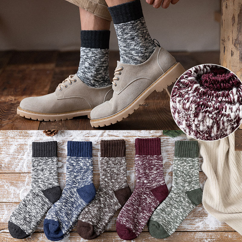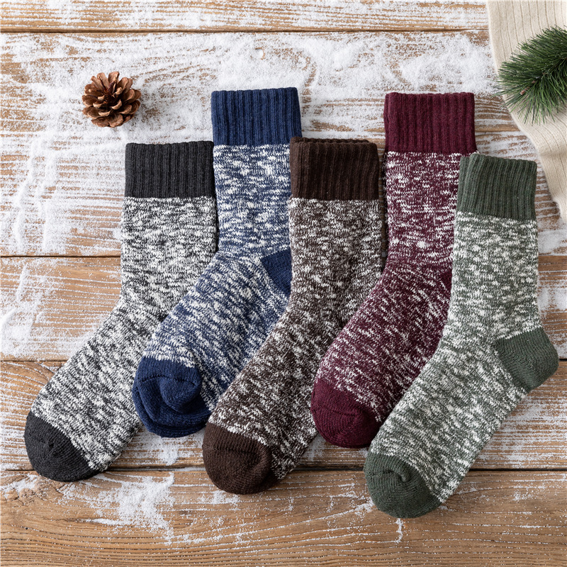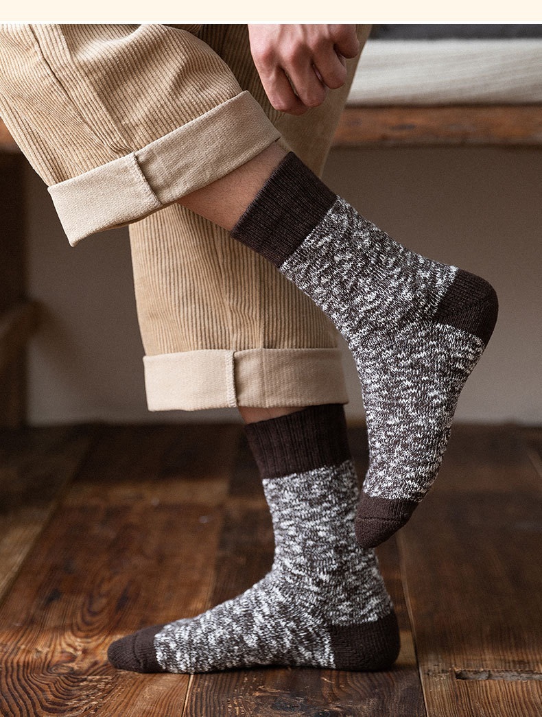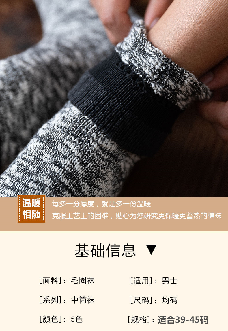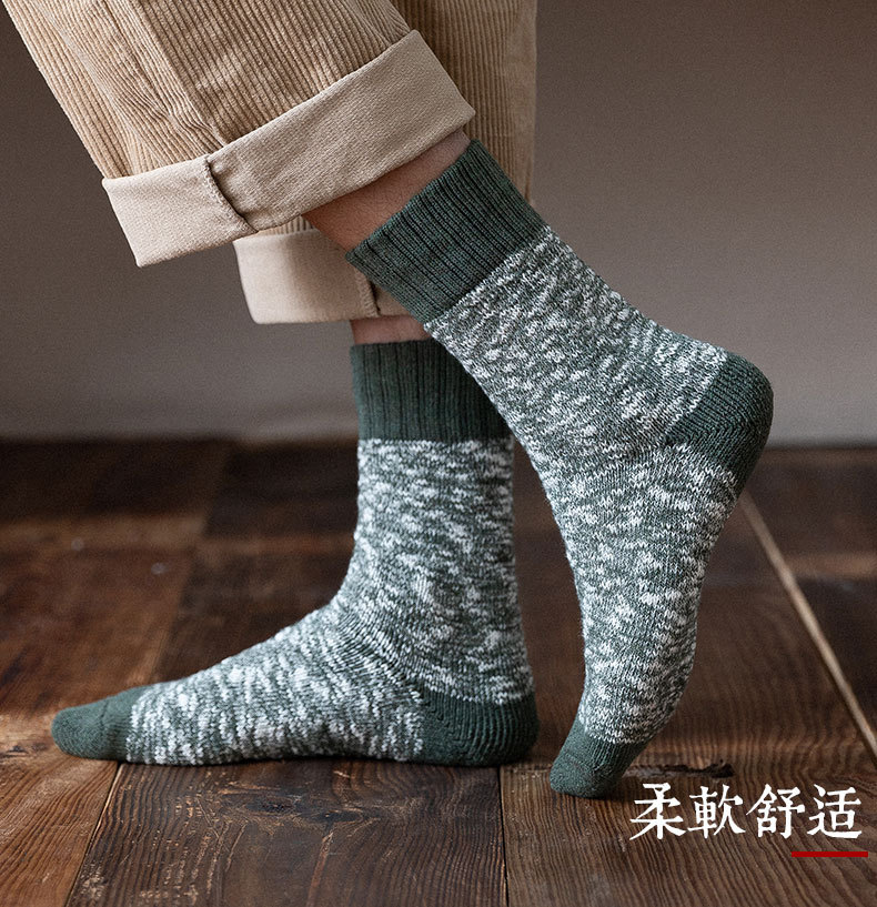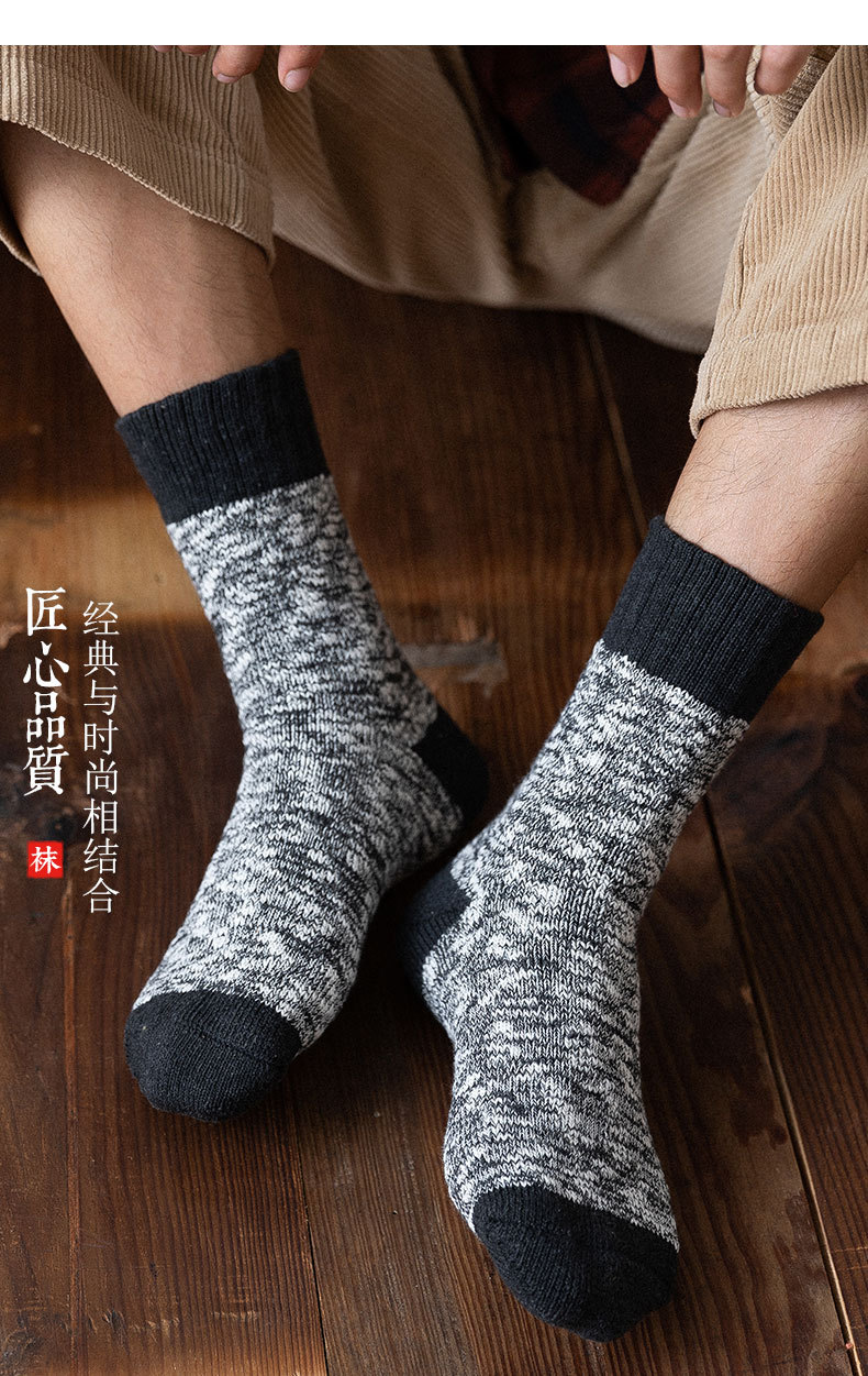 양말 남자 스타킹 겨울 두꺼운 따뜻한 테리 라인 스타킹 일본식 슈퍼 두꺼운 기모 중간 길이 스타킹 유행 겨울 면 스타킹